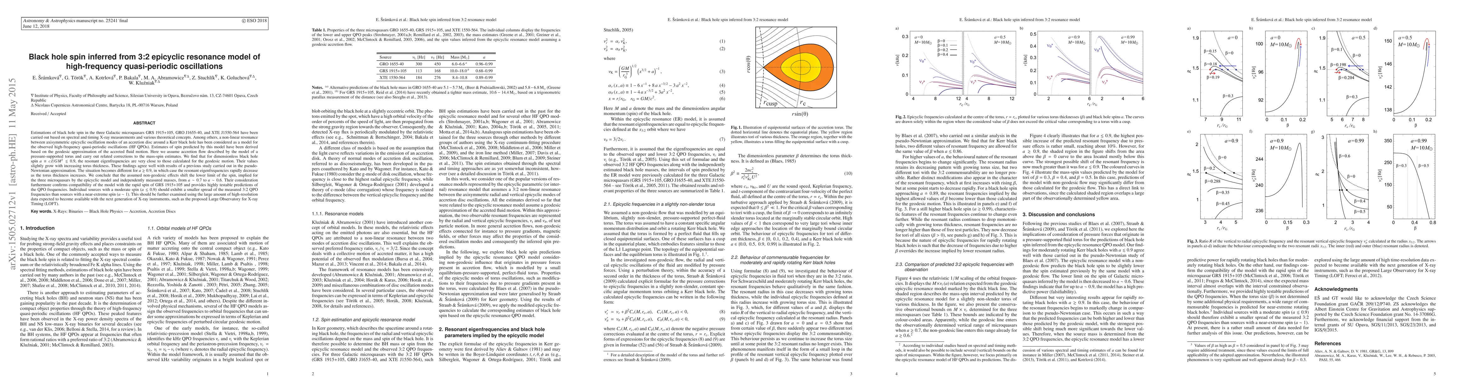 This paper estimates black hole spin in three microquasars using high-frequency quasi-periodic oscillations (HF QPOs) and a 3:2 epicyclic resonance model, finding that non-geodesic effects lower the spin limit from ~0.7 to ~0.6. It predicts smaller frequency spreads for moderate spin sources and suggests future observations with advanced X-ray instruments for validation.