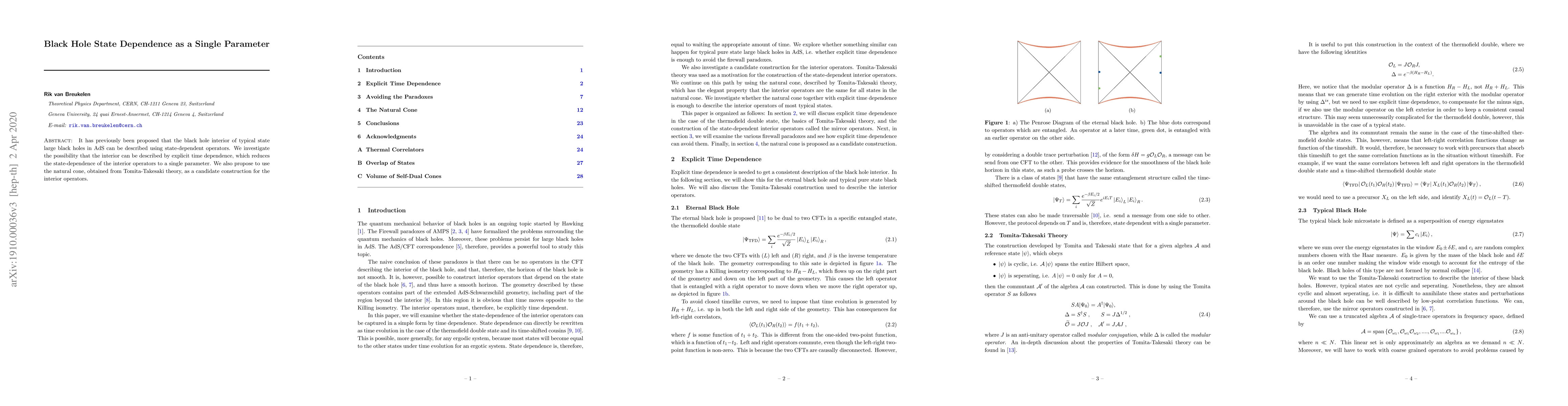 It has previously been proposed that the black hole interior of typical state large black holes in AdS can be described using state-dependent operators. We investigate the possibility that the interior can be described by explicit time dependence, which reduces the state-dependence of the interior operators to a single parameter. We also propose to use the natural cone, obtained from Tomita-Takesaki theory, as a candidate construction for the interior operators.