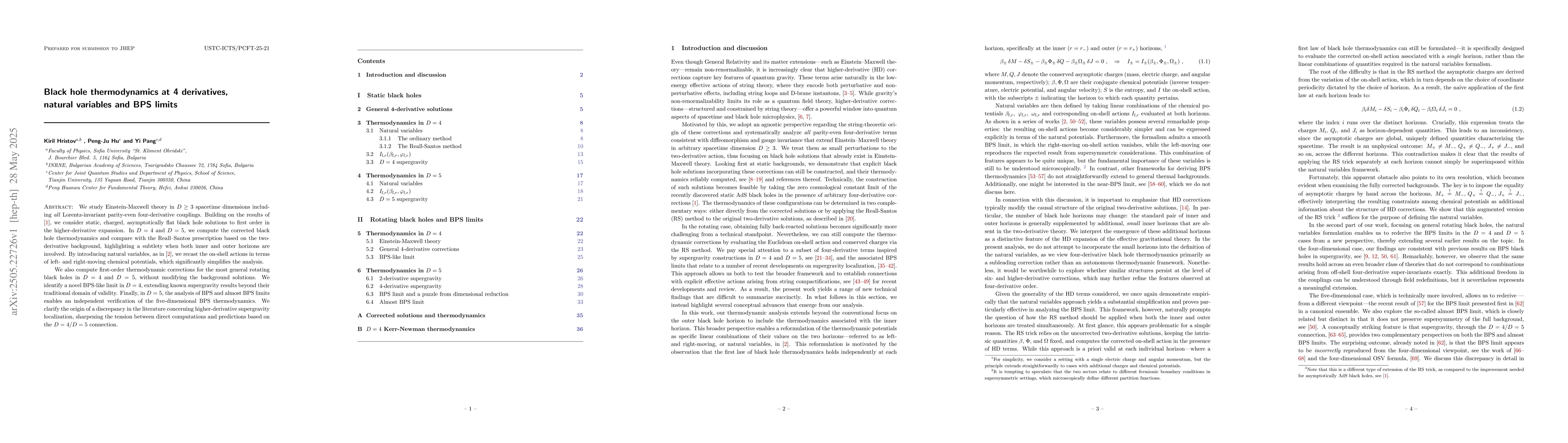 We study Einstein-Maxwell theory in $D \geq 3$ spacetime dimensions including all Lorentz-invariant parity-even four-derivative couplings. Building on the results of arXiv:2312.11610, we consider static, charged, asymptotically flat black hole solutions to first order in the higher-derivative expansion. In $D=4$ and $D=5$, we compute the corrected black hole thermodynamics and compare with the Reall-Santos prescription based on the two-derivative background, highlighting a subtlety when both inner and outer horizons are involved. By introducing natural variables, as in arXiv:2304.07320, we recast the on-shell actions in terms of left- and right-moving chemical potentials, which significantly simplifies the analysis. We also compute first-order thermodynamic corrections for the most general rotating black holes in $D=4$ and $D=5$, without modifying the background solutions. We identify a novel BPS-like limit in $D=4$, extending known supergravity results beyond their traditional domain of validity. Finally, in $D=5$, the analysis of BPS and almost BPS limits enables an independent verification of the five-dimensional BPS thermodynamics. We clarify the origin of a discrepancy in the literature concerning higher-derivative supergravity localization, sharpening the tension between direct computations and predictions based on the $D=4$/$D=5$ connection.