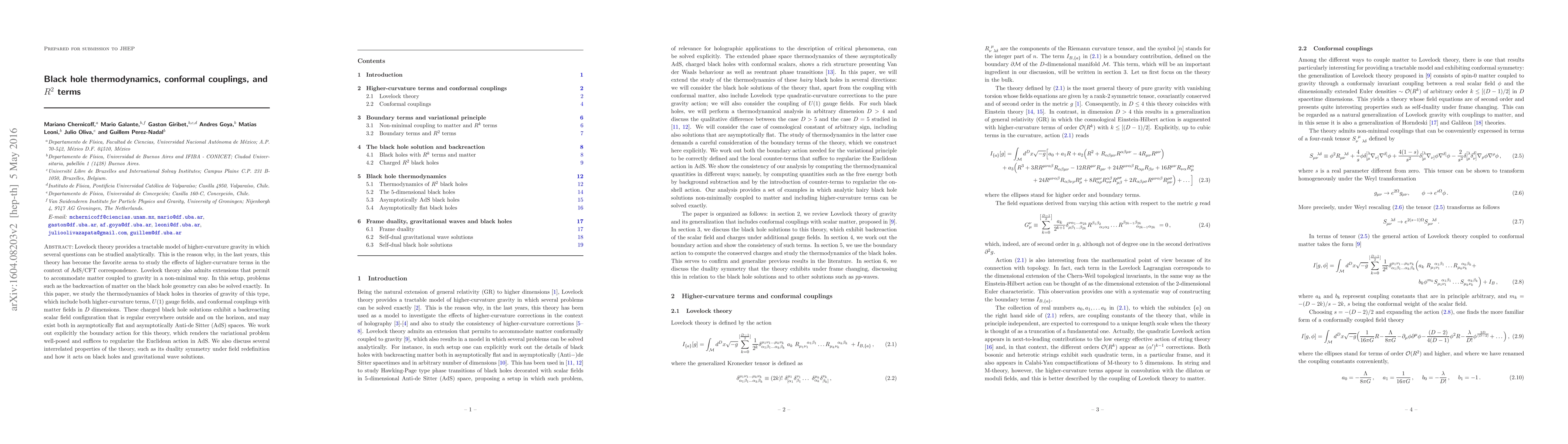 Lovelock theory provides a tractable model of higher-curvature gravity in which several questions can be studied analytically. This is the reason why, in the last years, this theory has become the favorite arena to study the effects of higher-curvature terms in the context of AdS/CFT correspondence. Lovelock theory also admits extensions that permit to accommodate matter coupled to gravity in a non-minimal way. In this setup, problems such as the backreaction of matter on the black hole geometry can also be solved exactly. In this paper, we study the thermodynamics of black holes in theories of gravity of this type, which include both higher-curvature terms, U(1) gauge fields, and conformal couplings with matter fields in D dimensions. These charged black hole solutions exhibit a backreacting scalar field configuration that is regular everywhere outside and on the horizon, and may exist both in asymptotically flat and asymptotically Anti-de Sitter (AdS) spaces. We work out explicitly the boundary action for this theory, which renders the variational problem well-posed and suffices to regularize the Euclidean action in AdS. We also discuss several interrelated properties of the theory, such as its duality symmetry under field redefinition and how it acts on black holes and gravitational wave solutions.