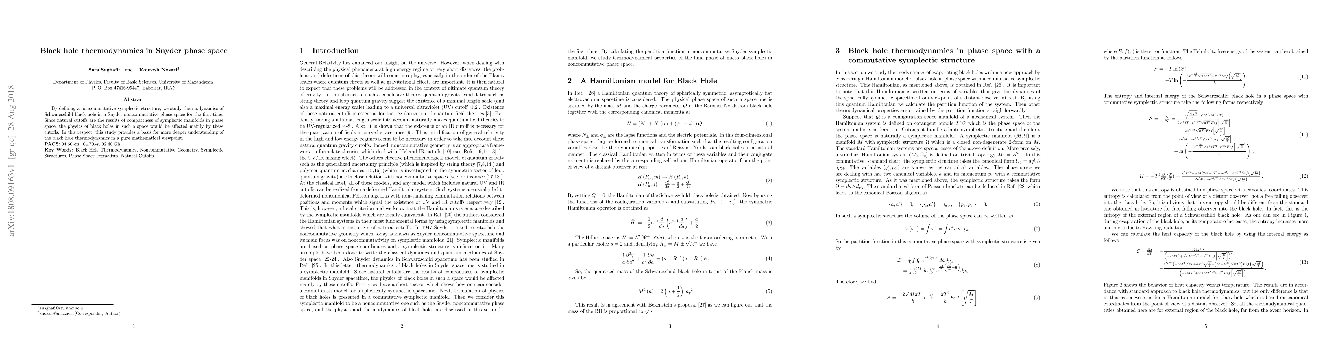 This research introduces a noncommutative symplectic structure to examine the thermodynamics of Schwarzschild black holes within Snyder noncommutative phase space, emphasizing the role of natural cutoffs arising from phase space compactness in influencing black hole physics. The study lays a foundation for a deeper mathematical understanding of black hole thermodynamics.