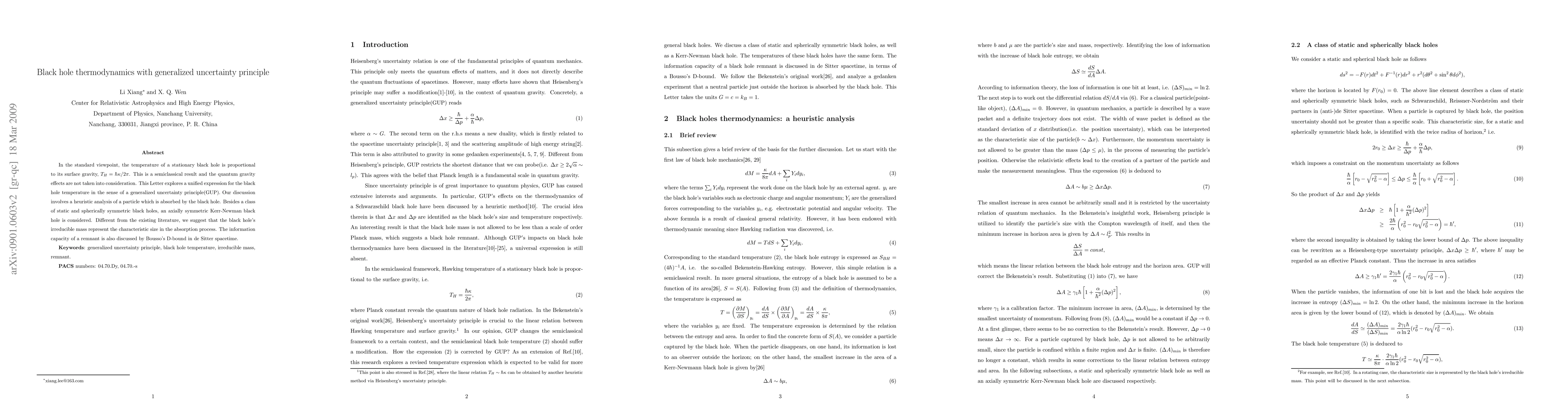 This paper proposes a unified expression for black hole temperature incorporating the generalized uncertainty principle (GUP) and suggests that black hole's irreducible mass represents the characteristic size in absorption processes. It also discusses the information capacity of remnants using Bousso's D-bound in de Sitter spacetime.