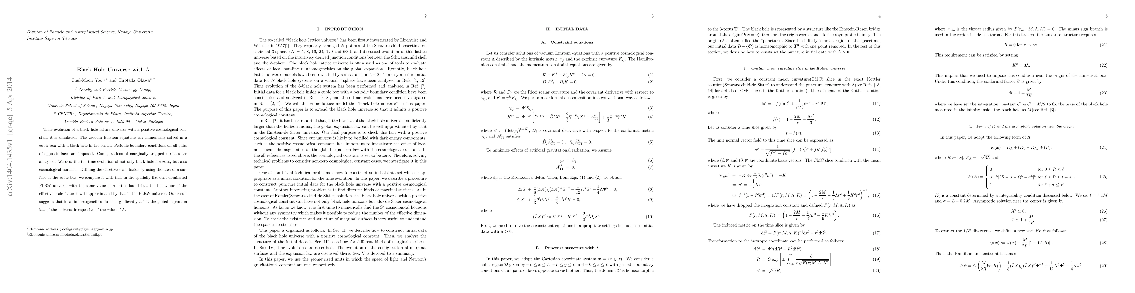 This paper simulates the time evolution of a black hole lattice universe with a positive cosmological constant $\Lambda$, finding that local inhomogeneities, such as black hole horizons, do not significantly affect the global expansion law, which aligns well with the behavior in a spatially flat dust-dominated FLRW universe with the same $\Lambda$.