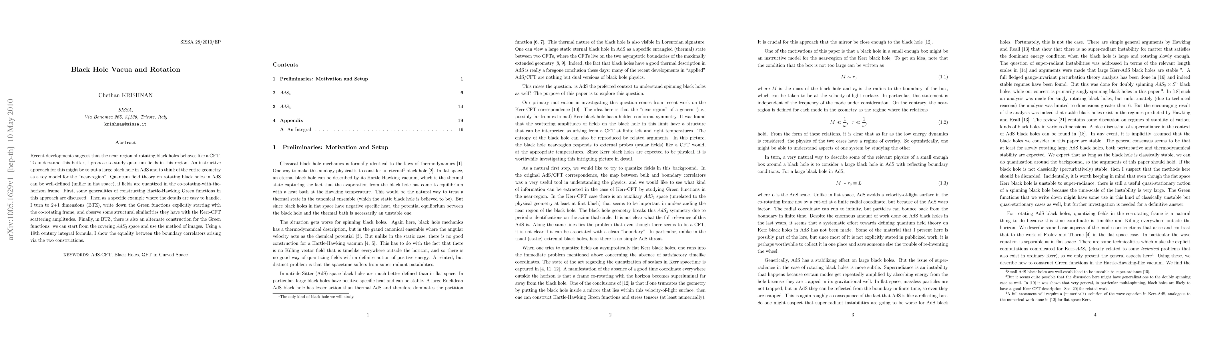 Recent developments suggest that the near-region of rotating black holes behaves like a CFT. To understand this better, I propose to study quantum fields in this region. An instructive approach for this might be to put a large black hole in AdS and to think of the entire geometry as a toy model for the ``near-region". Quantum field theory on rotating black holes in AdS can be well-defined (unlike in flat space), if fields are quantized in the co-rotating-with-the-horizon frame. First, some generalities of constructing Hartle-Hawking Green functions in this approach are discussed. Then as a specific example where the details are easy to handle, I turn to 2+1 dimensions (BTZ), write down the Green functions explicitly starting with the co-rotating frame, and observe some structural similarities they have with the Kerr-CFT scattering amplitudes. Finally, in BTZ, there is also an alternate construction for the Green functions: we can start from the covering AdS_3 space and use the method of images. Using a 19th century integral formula, I show the equality between the boundary correlators arising via the two constructions.