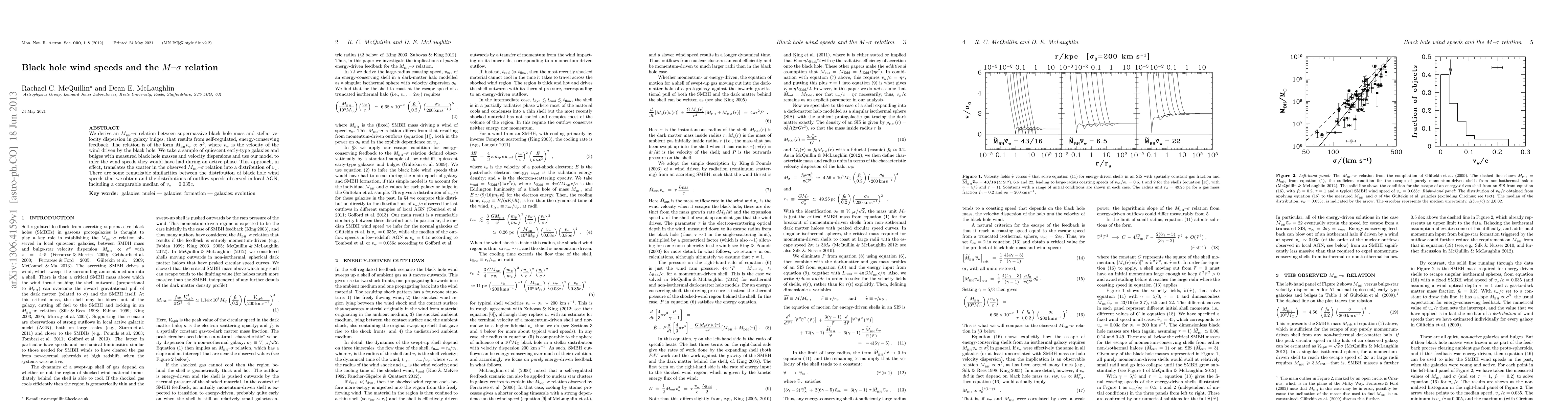 We derive an M_bh-sigma relation between supermassive black hole mass and stellar velocity dispersion in galaxy bulges, that results from self-regulated, energy-conserving feedback. The relation is of the form M_bh v_w \propto sigma^5, where v_w is the velocity of the wind driven by the black hole. We take a sample of quiescent early-type galaxies and bulges with measured black hole masses and velocity dispersions and use our model to infer the wind speeds they would have had during an active phase. This approach, in effect, translates the scatter in the observed M_bh-sigma relation into a distribution of v_w. There are some remarkable similarities between the distribution of black hole wind speeds that we obtain and the distributions of outflow speeds observed in local AGN, including a comparable median of v_w = 0.035 c.