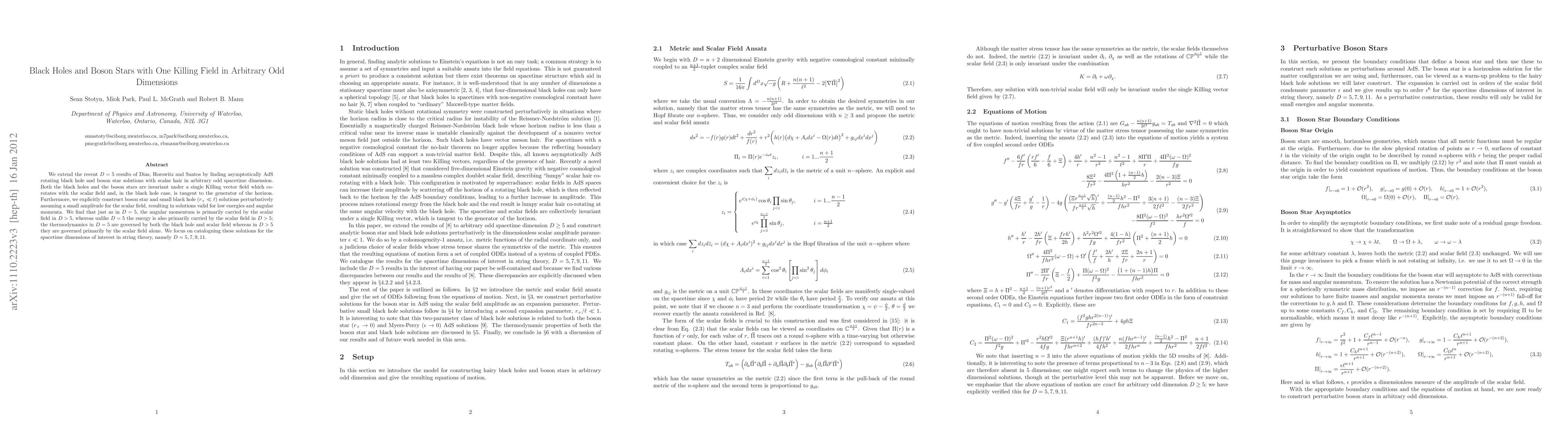 We extend the recent D=5 results of Dias, Horowitz and Santos by finding asymptotically AdS rotating black hole and boson star solutions with scalar hair in arbitrary odd spacetime dimension. Both the black holes and the boson stars are invariant under a single Killing vector field which co-rotates with the scalar field and, in the black hole case, is tangent to the generator of the horizon. Furthermore, we explicitly construct boson star and small black hole ($r_+ \ll \ell$) solutions perturbatively assuming a small amplitude for the scalar field, resulting in solutions valid for low energies and angular momenta. We find that just as in D=5, the angular momentum is primarily carried by the scalar field in $D>5$, whereas unlike D=5 the energy is also primarily carried by the scalar field in $D>5$; the thermodynamics in D=5 are governed by both the black hole and scalar field whereas in $D>5$ they are governed primarily by the scalar field alone. We focus on cataloguing these solutions for the spacetime dimensions of interest in string theory, namely $D=5,7,9,11$.