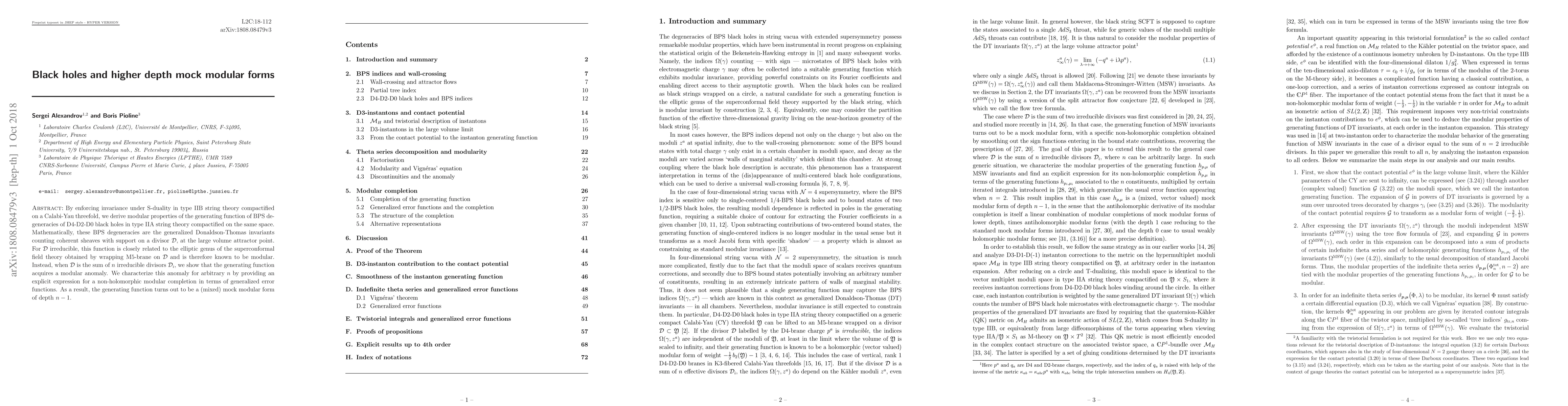 This paper derives modular properties of the generating function for BPS degeneracies of black holes in string theory, showing that when divisors are irreducible, the function is modular, but when composed of multiple irreducible components, it acquires a modular anomaly, expressed as a mock modular form.
