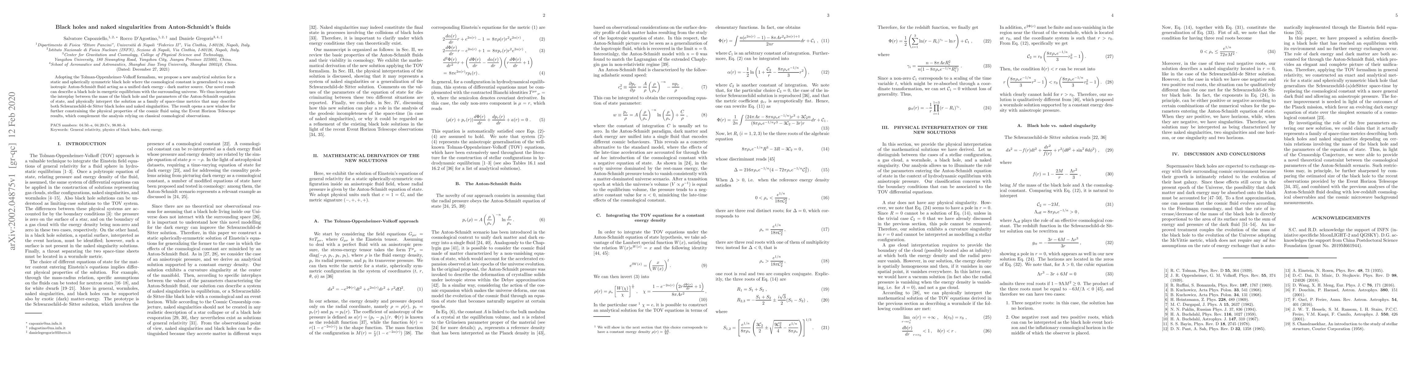 This paper presents an analytical solution for a static black hole using Anton-Schmidt fluids, describing a black hole in equilibrium with the universe. It explores the relationship between black hole mass and Anton-Schmidt fluid parameters, suggesting the solution may also describe naked singularities, and proposes using the Event Horizon Telescope for further analysis.