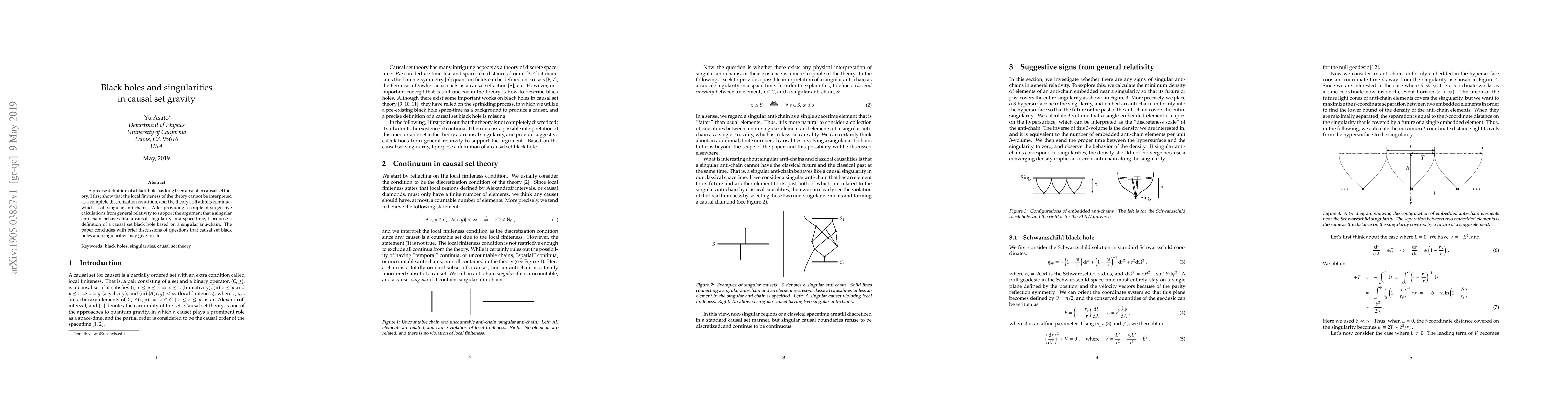 This paper proposes a definition for black holes within causal set theory, demonstrating that singular anti-chains—a form of continua—can behave like causal singularities. It concludes by suggesting potential questions arising from the study of causal set black holes and singularities.