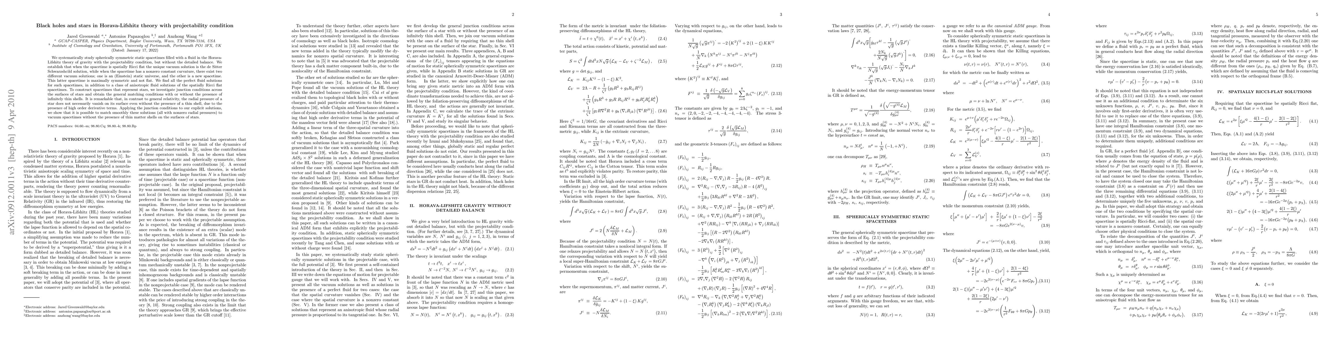 This paper explores spherically symmetric static spacetimes in Horava-Lifshitz gravity with projectability, revealing unique vacuum solutions and perfect fluid configurations. It demonstrates that stars can be smoothly matched to vacuum spacetimes in this theory, even without thin shells, due to high-order derivative terms.