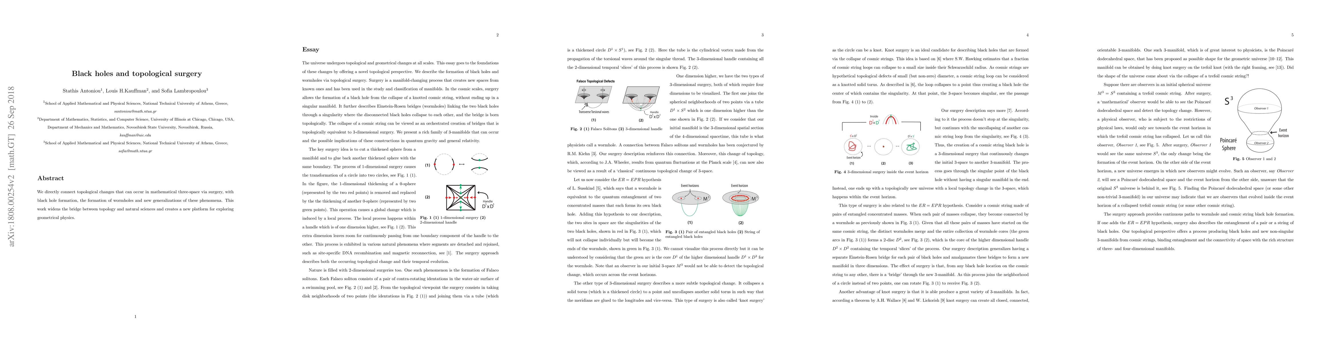 We directly connect topological changes that can occur in mathematical three-space via surgery, with black hole formation, the formation of wormholes and new generalizations of these phenomena. This work widens the bridge between topology and natural sciences and creates a new platform for exploring geometrical physics.