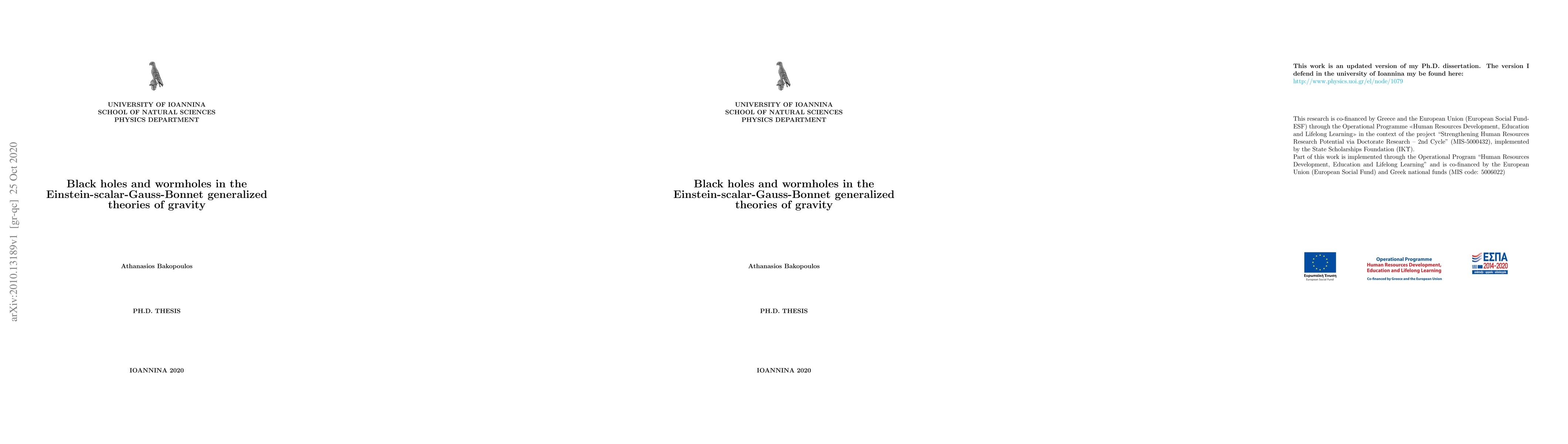 In this Ph.D. dissertation we study the emergence of black-hole and wormhole solutions in the framework of the Einstein-scalar-Gauss-Bonnet (EsGB) theory. Particularly we study a family of theories where the coupling function $f(\phi)$ between the scalar field of the theory and the quadratic Gauss-Bonnet gravitational term has an arbitrary form. At first, we analytically derive that the aforementioned family of theories may evade the constraints imposed by Bekenstein's No-Scalar Hair theorems and new solutions for black holes may be found. Then, using numerical integration methods we find solutions for black holes for many different forms of the coupling function. Also we derive their physical characteristics namely their mass, scalar charge, horizon area and entropy as well. Subsequently, by introducing a cosmological constant in the theory we investigate the existence of novel black-hole solutions. Specifically, assuming that the cosmological constant may be positive or negative we find numerical solutions which are asymptotically de Sitter or anti-de Sitter. In addition, as in the case of the asymptotically flat black holes, for each case we derive their physical characteristics. Finally, in the framework of the EsGB theory we derive novel wormhole solutions. The Gauss-Bonnet wormholes are traversable, may have a single or a double throat and do not demand the existence of exotic matter.