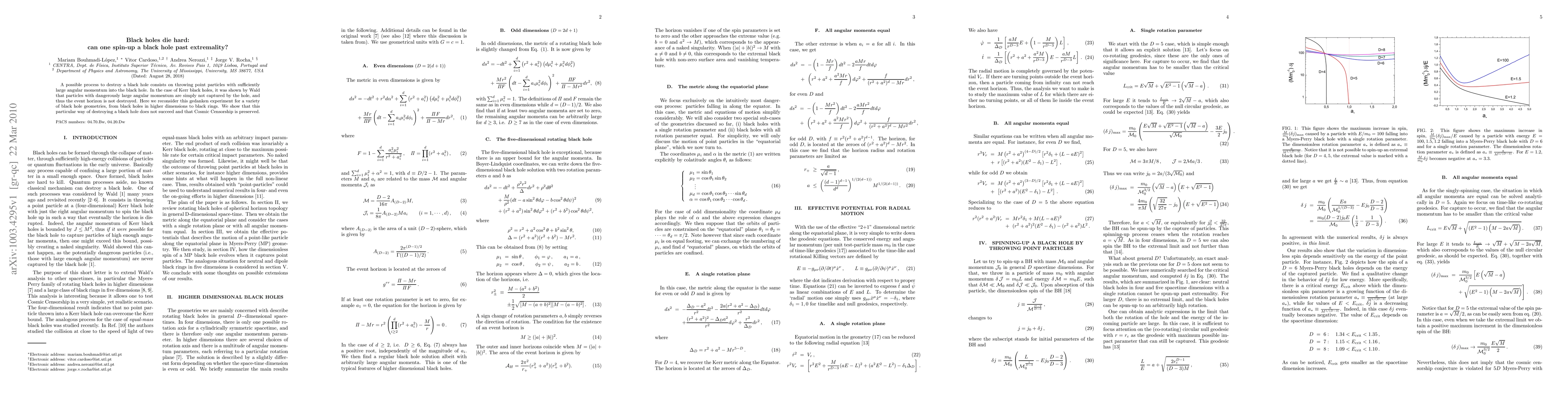 A possible process to destroy a black hole consists on throwing point particles with sufficiently large angular momentum into the black hole. In the case of Kerr black holes, it was shown by Wald that particles with dangerously large angular momentum are simply not captured by the hole, and thus the event horizon is not destroyed. Here we reconsider this gedanken experiment for a variety of black hole geometries, from black holes in higher dimensions to black rings. We show that this particular way of destroying a black hole does not succeed and that Cosmic Censorship is preserved.