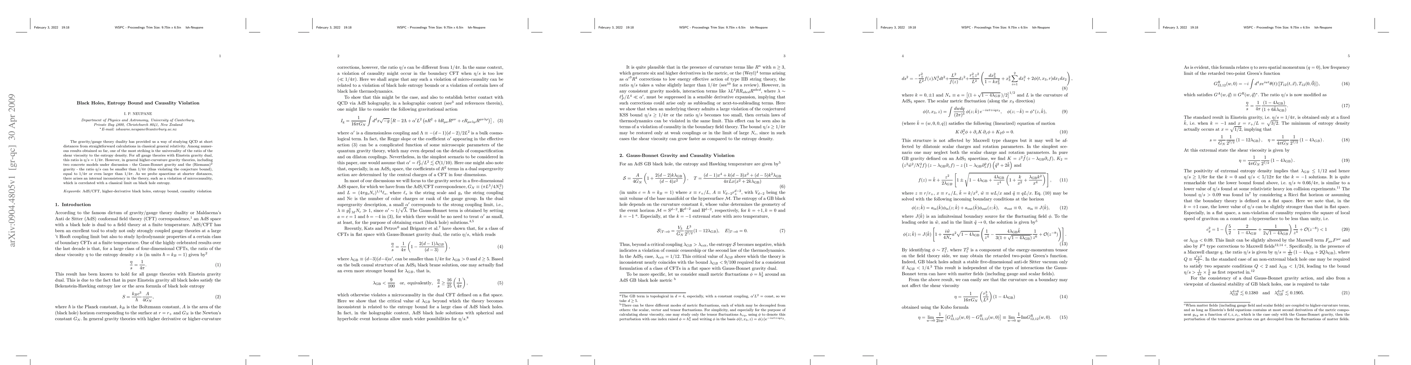 The gravity/gauge theory duality has provided us a way of studying QCD at short distances from straightforward calculations in classical general relativity. Among numerous results obtained so far, one of the most striking is the universality of the ratio of the shear viscosity to the entropy density. For all gauge theories with Einstein gravity dual, this ratio is \eta/s=1/4\pi. However, in general higher-curvature gravity theories, including two concrete models under discussion - the Gauss-Bonnet gravity and the (Riemann)^2 gravity - the ratio \eta/s can be smaller than 1/4\pi (thus violating the conjecture bound), equal to 1/4\pi or even larger than 1/4\pi. As we probe spacetime at shorter distances, there arises an internal inconsistency in the theory, such as a violation of microcausality, which is correlated with a classical limit on black hole entropy.