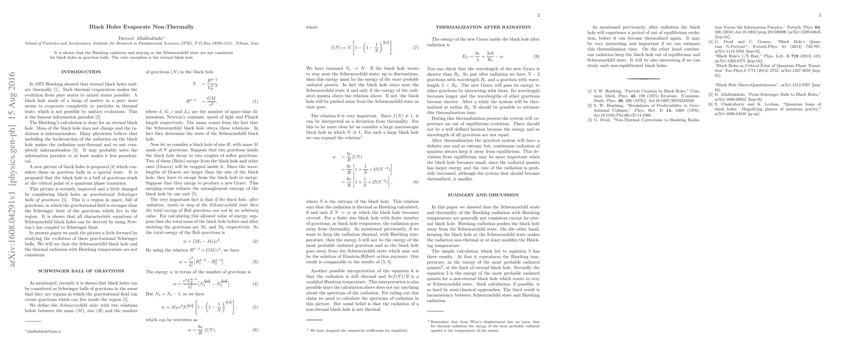 It is shown that the Hawking radiation and staying at the Schwarzschild state are not consistent for black holes as graviton balls. The only exception is the eternal black hole.