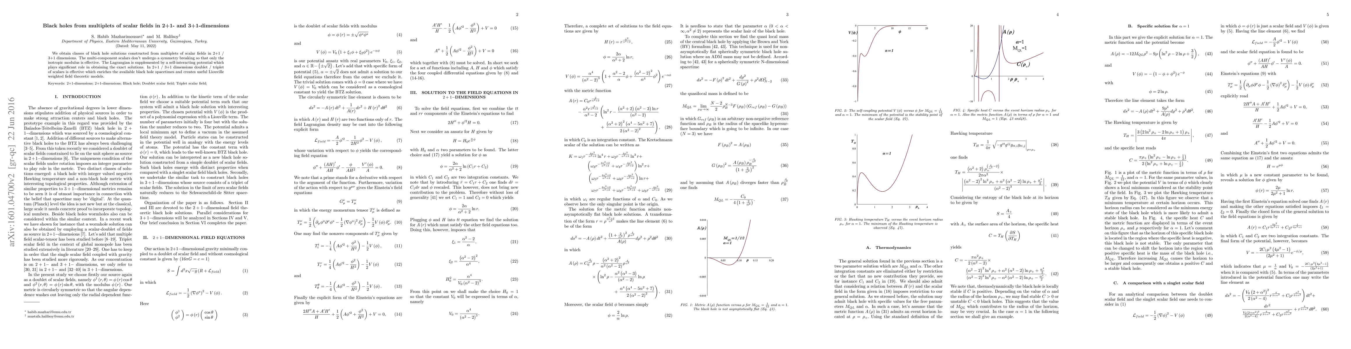 We obtain classes of black hole solutions constructed from multiplets of scalar fields in 2+1 / 3+1 dimensions. The multi-component scalars don't undergo a symmetry breaking so that only the isotropic modulus is effective. The Lagrangian is supplemented by a self-interacting potential which plays significant role in obtaining the exact solutions. In 2+1 / 3+1 dimensions doublet / triplet of scalars is effective which enriches the available black hole spacetimes and creates useful Liouville weighted field theoretic models.