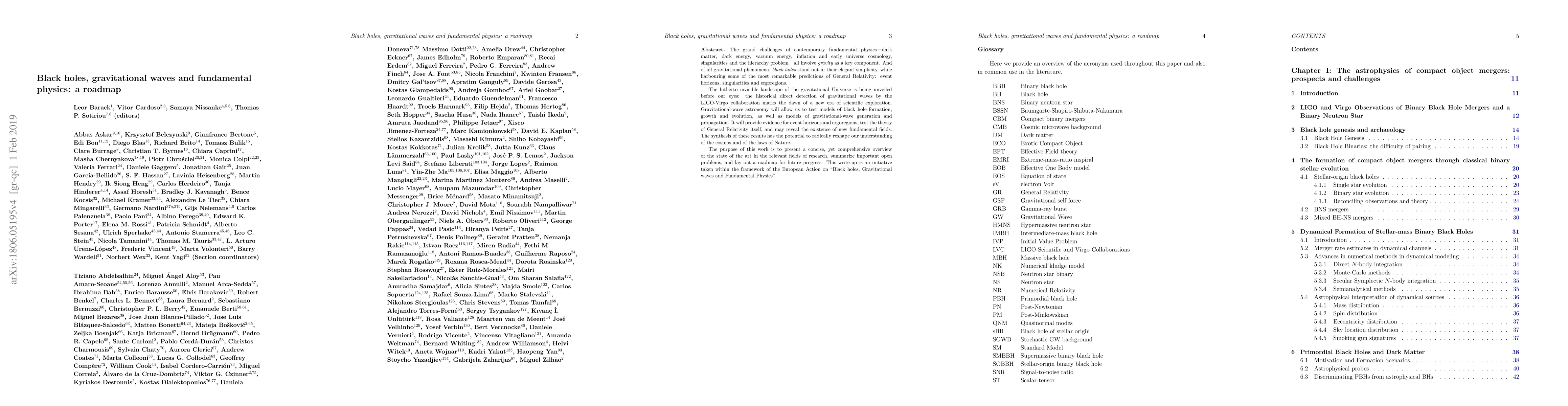 The grand challenges of contemporary fundamental physics---dark matter, dark energy, vacuum energy, inflation and early universe cosmology, singularities and the hierarchy problem---all involve gravity as a key component. And of all gravitational phenomena, black holes stand out in their elegant simplicity, while harbouring some of the most remarkable predictions of General Relativity: event horizons, singularities and ergoregions. The hitherto invisible landscape of the gravitational Universe is being unveiled before our eyes: the historical direct detection of gravitational waves by the LIGO-Virgo collaboration marks the dawn of a new era of scientific exploration. Gravitational-wave astronomy will allow us to test models of black hole formation, growth and evolution, as well as models of gravitational-wave generation and propagation. It will provide evidence for event horizons and ergoregions, test the theory of General Relativity itself, and may reveal the existence of new fundamental fields. The synthesis of these results has the potential to radically reshape our understanding of the cosmos and of the laws of Nature. The purpose of this work is to present a concise, yet comprehensive overview of the state of the art in the relevant fields of research, summarize important open problems, and lay out a roadmap for future progress.