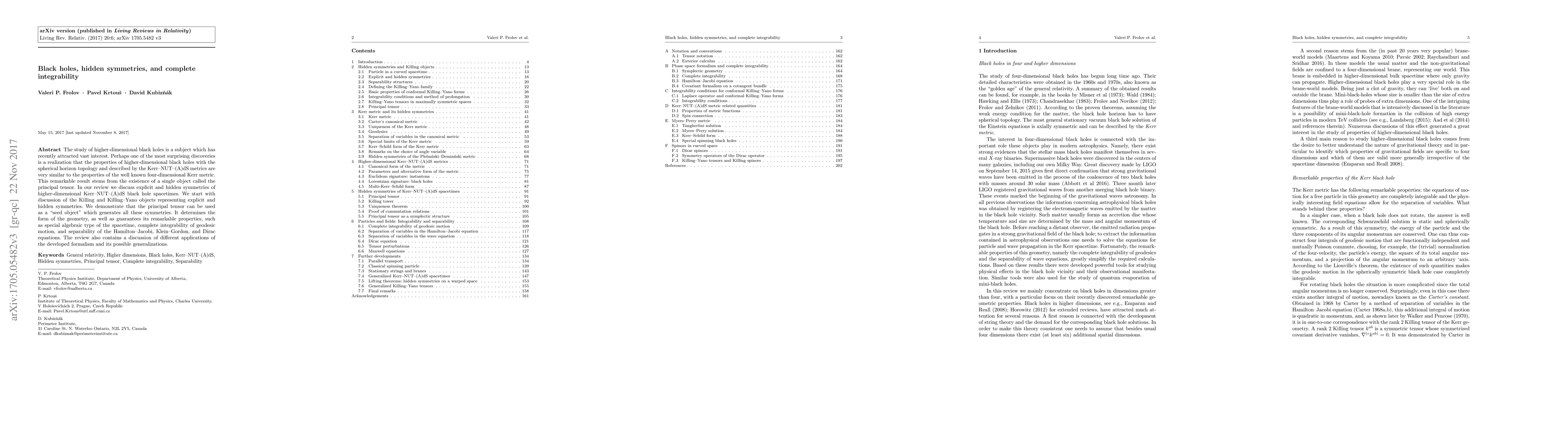 This paper explores the symmetries and complete integrability of higher-dimensional black holes, revealing surprising similarities to four-dimensional Kerr black holes. It introduces the principal tensor as a key object generating these symmetries and discusses its role in ensuring the black hole's unique properties and applications.