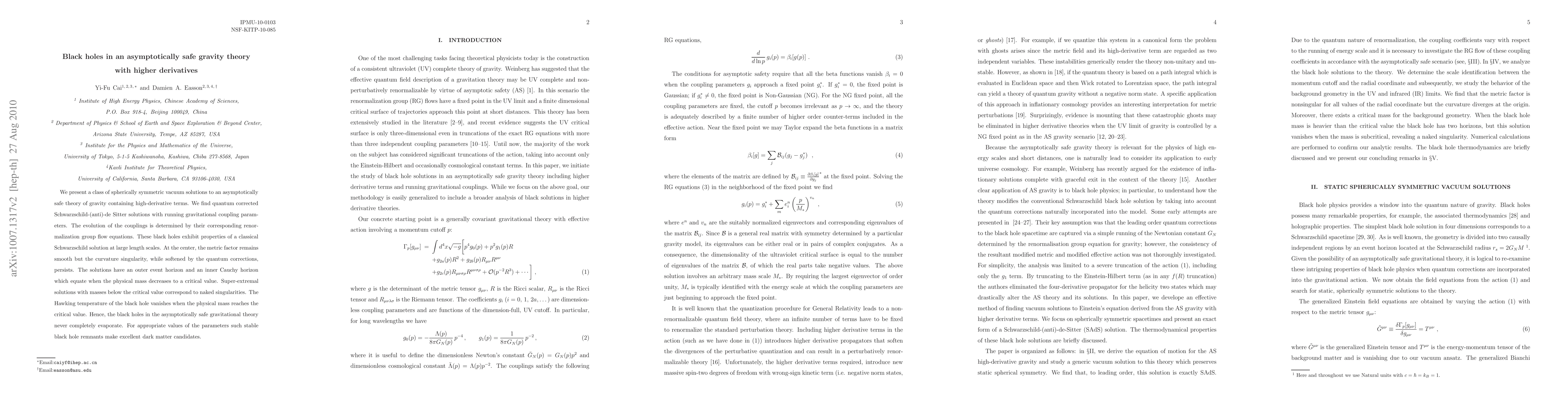 This paper explores spherically symmetric vacuum solutions in an asymptotically safe gravity theory with high-derivative terms, revealing quantum corrected Schwarzschild-(anti)-de Sitter black holes with running couplings. These black holes retain classical properties at large scales but exhibit persistent curvature singularities, with stable remnants potentially serving as dark matter candidates.