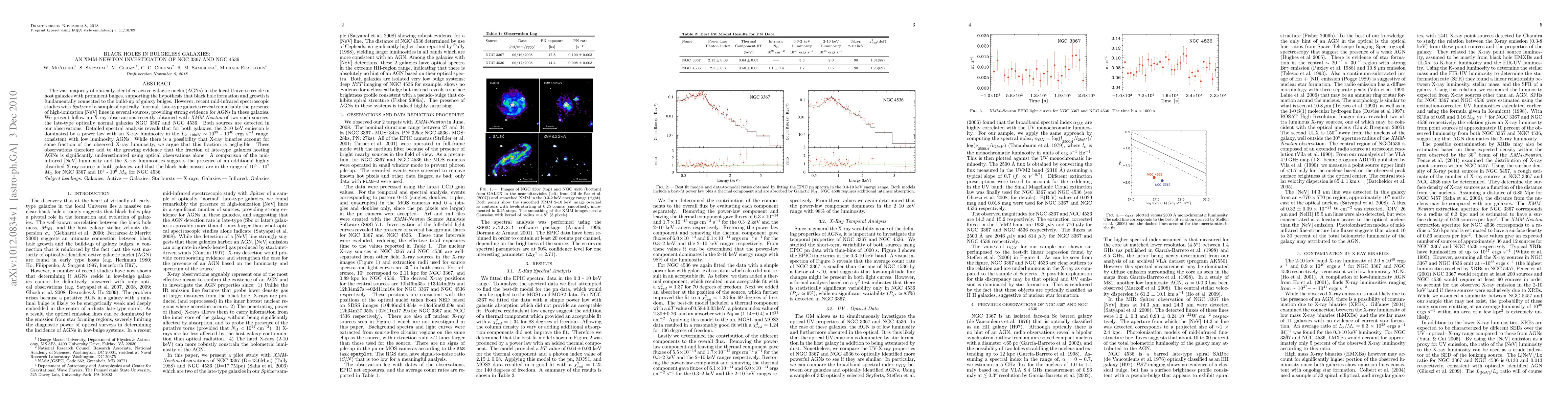 The vast majority of optically identified active galactic nuclei (AGNs) in the local Universe reside in host galaxies with prominent bulges, supporting the hypothesis that black hole formation and growth is fundamentally connected to the build-up of galaxy bulges. However, recent mid-infrared spectroscopic studies with Spitzer of a sample of optically "normal" late-type galaxies reveal remarkably the presence of high-ionization [NeV] lines in several sources, providing strong evidence for AGNs in these galaxies. We present follow-up X-ray observations recently obtained with XMM-Newton of two such sources, the late-type optically normal galaxies NGC 3367 and NGC 4536. Both sources are detected in our observations. Detailed spectral analysis reveals that for both galaxies, the 2-10 keV emission is dominated by a power law with an X-ray luminosity in the 10^39 - 10^40 ergs s^-1 range, consistent with low luminosity AGNs. While there is a possibility that X-ray binaries account for some fraction of the observed X-ray luminosity, we argue that this fraction is negligible. These observations therefore add to the growing evidence that the fraction of late-type galaxies hosting AGNs is significantly underestimated using optical observations alone. A comparison of the mid-infrared [NeV] luminosity and the X-ray luminosities suggests the presence of an additional highly absorbed X-ray source in both galaxies, and that the black hole masses are in the range of 10^5 - 10^7 M_solar for NGC 3367 and 10^4 - 10^6 M_solar for NGC 4536.