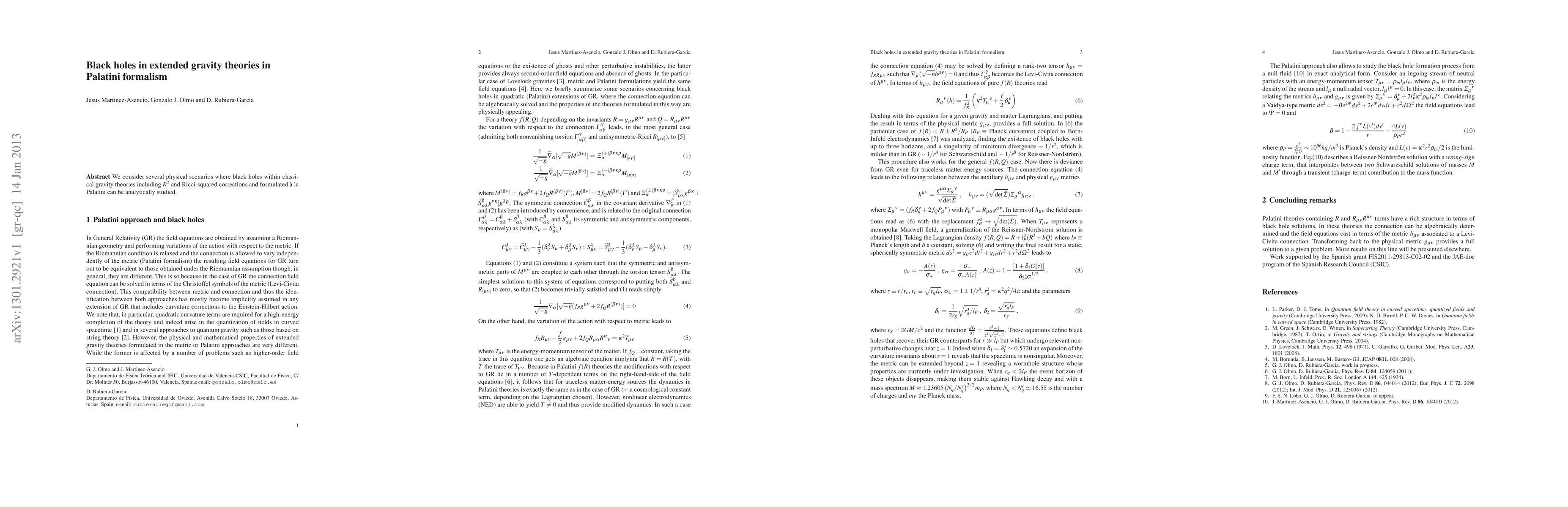 We consider several physical scenarios where black holes within classical gravity theories including $R^2$ and Ricci-squared corrections and formulated \`a la Palatini can be analytically studied.