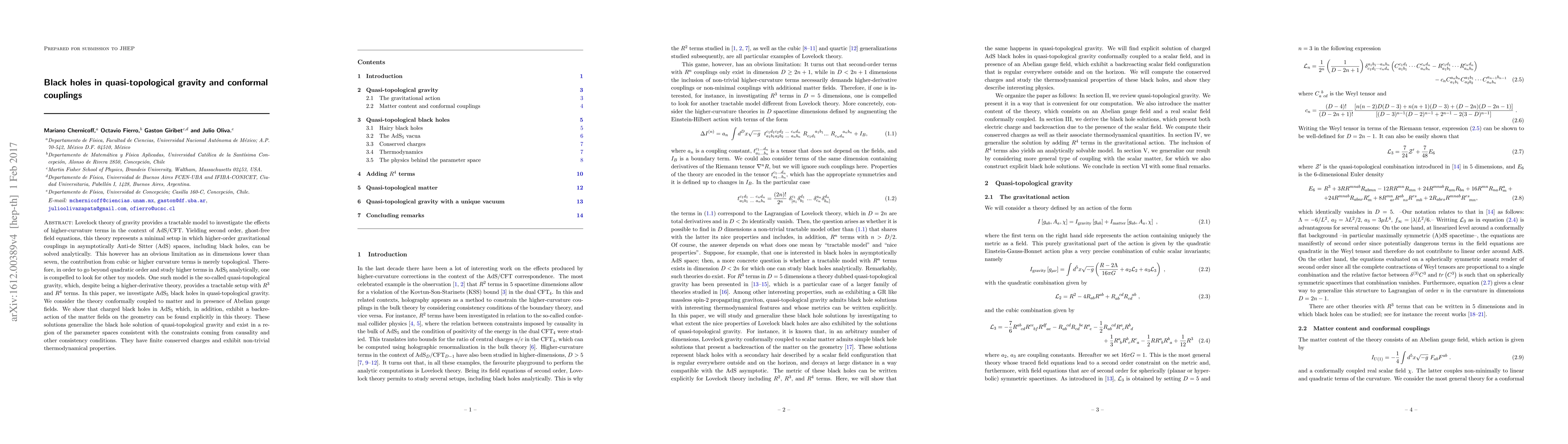 This paper explores black holes in quasi-topological gravity, a higher-derivative theory extending beyond quadratic curvature terms, to study analytically solvable solutions in AdS_5. It finds explicit charged black hole solutions with matter fields' backreaction, consistent with causality and exhibiting finite conserved charges and non-trivial thermodynamics.