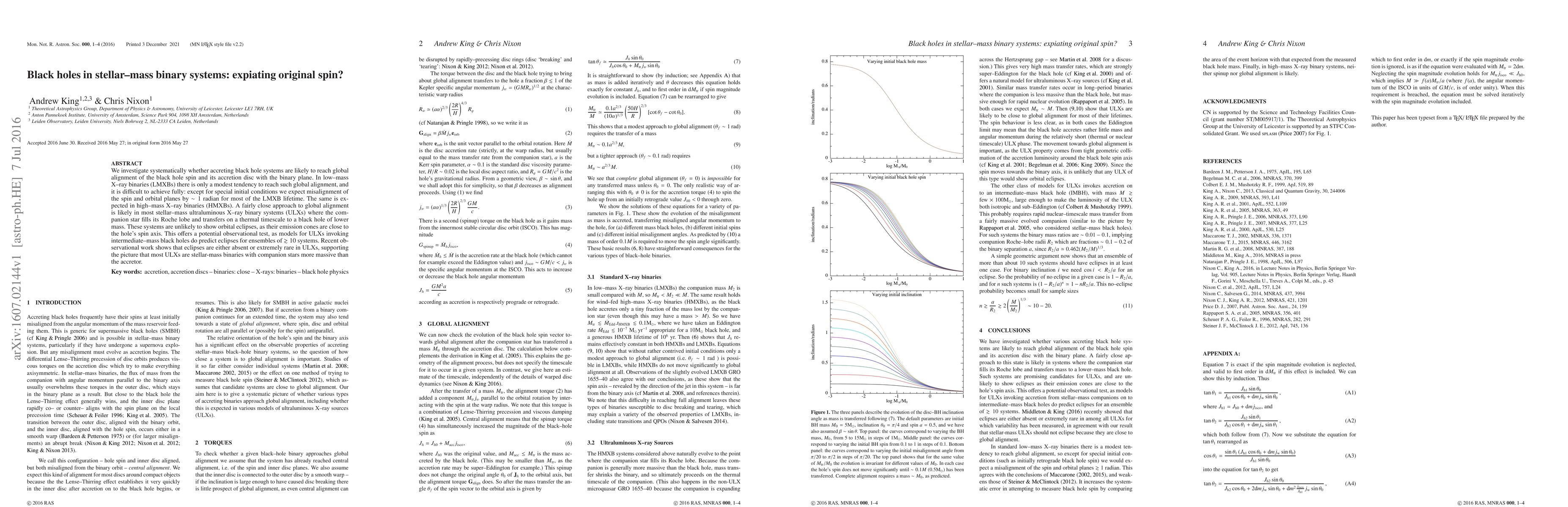 We investigate systematically whether accreting black hole systems are likely to reach global alignment of the black hole spin and its accretion disc with the binary plane. In low-mass X-ray binaries (LMXBs) there is only a modest tendency to reach such global alignment, and it is difficult to achieve fully: except for special initial conditions we expect misalignment of the spin and orbital planes by ~1 radian for most of the LMXB lifetime. The same is expected in high-mass X-ray binaries (HMXBs). A fairly close approach to global alignment is likely in most stellar-mass ultraluminous X-ray binary systems (ULXs) where the companion star fills its Roche lobe and transfers on a thermal timescale to a black hole of lower mass. These systems are unlikely to show orbital eclipses, as their emission cones are close to the hole's spin axis. This offers a potential observational test, as models for ULXs invoking intermediate-mass black holes do predict eclipses for ensembles of > ~10 systems. Recent observational work shows that eclipses are either absent or extremely rare in ULXs, supporting the picture that most ULXs are stellar-mass binaries with companion stars more massive than the accretor.
