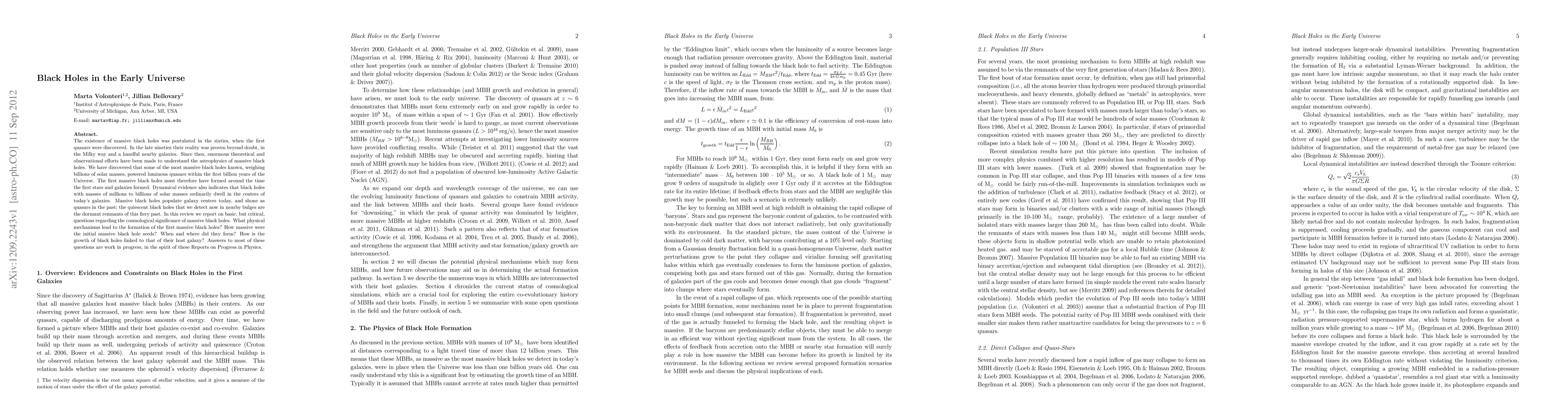 This paper reviews the discovery and significance of massive black holes, emphasizing their formation in the early Universe and their role in powering luminous quasars. It explores the mechanisms behind their initial formation and growth, linking their development to the evolution of their host galaxies.