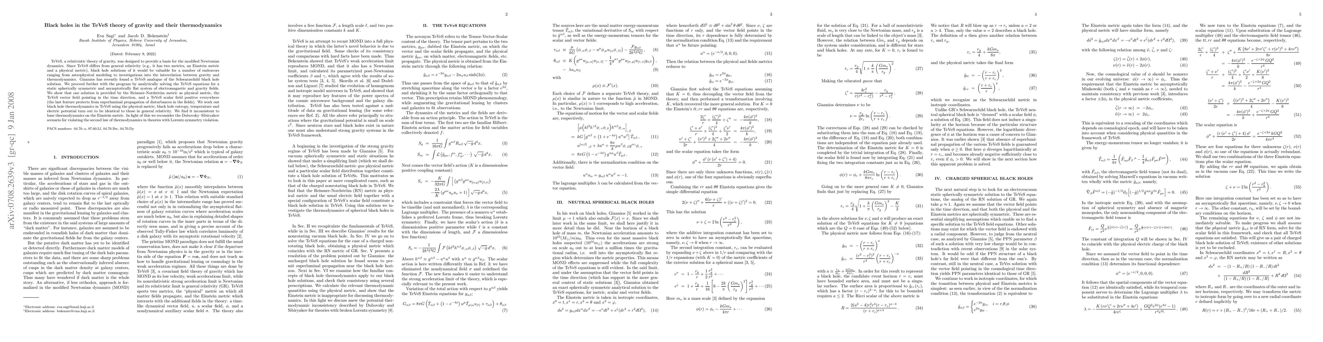 This paper explores black hole solutions in the TeVeS theory of gravity, finding a Reissner-Nordstrom analogue and demonstrating that black hole thermodynamics aligns with general relativity when using the physical metric. It concludes that the Einstein metric is inconsistent for thermodynamic calculations.