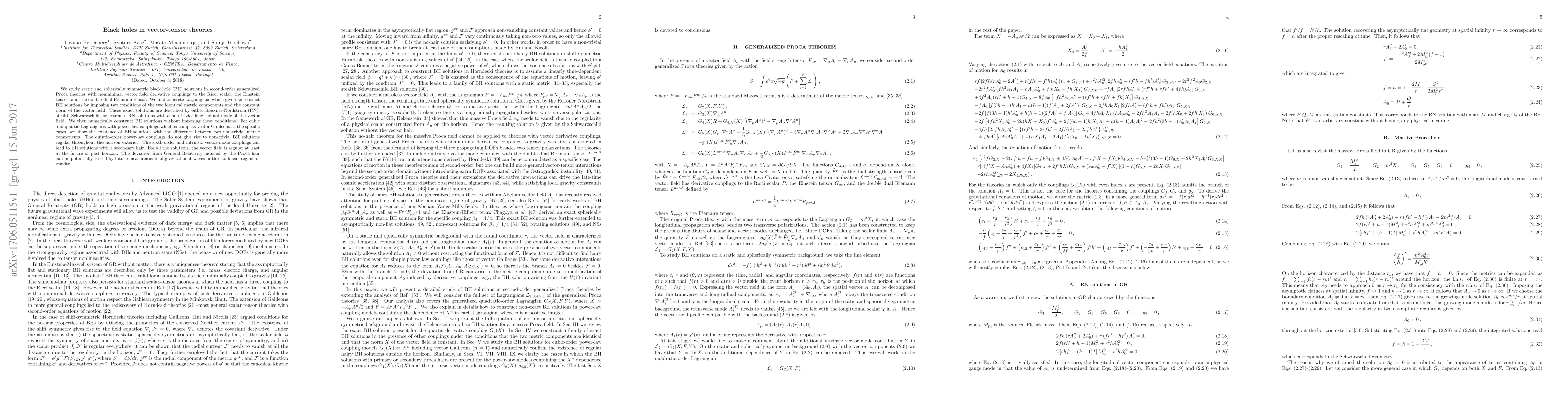 This research identifies static, spherically symmetric black hole solutions in vector-tensor theories, finding concrete Lagrangians that result in exact solutions resembling Reissner-Nordström, stealth Schwarzschild, or extremal Reissner-Nordström models with a non-trivial vector field. Numerical constructions of black holes without imposed conditions reveal that certain cubic, quartic, and sixth-order power-law coupled Lagrangians allow for black holes with non-trivial vector field 'hair', regular at horizons. These findings suggest potential for testing deviations from General Relativity via gravitational wave measurements in extreme gravity conditions.