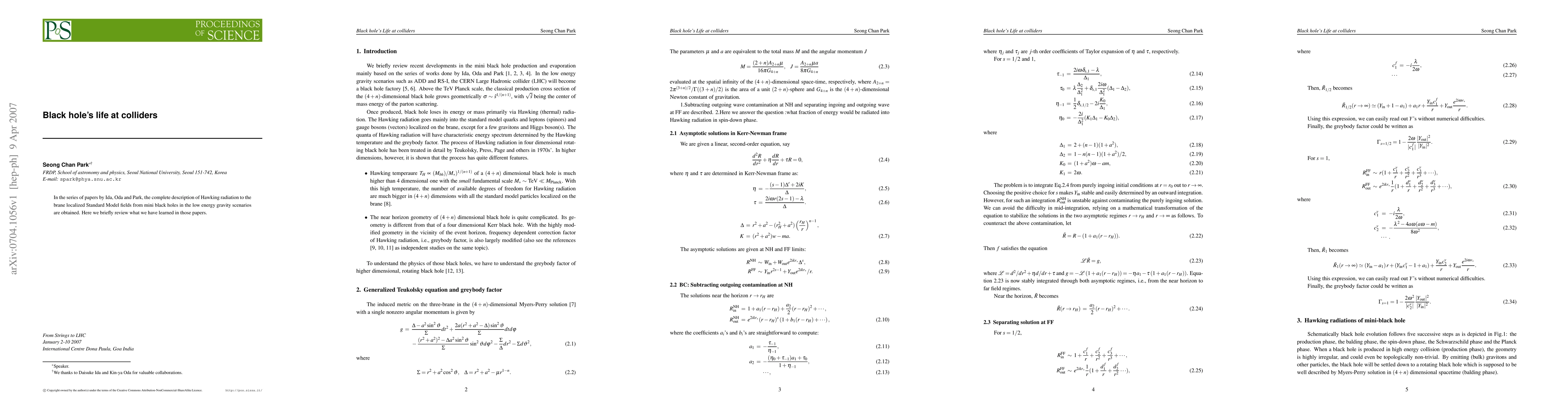 In the series of papers by Ida, Oda and Park, the complete description of Hawking radiation to the brane localized Standard Model fields from mini black holes in the low energy gravity scenarios are obtained. Here we briefly review what we have learned in those papers.