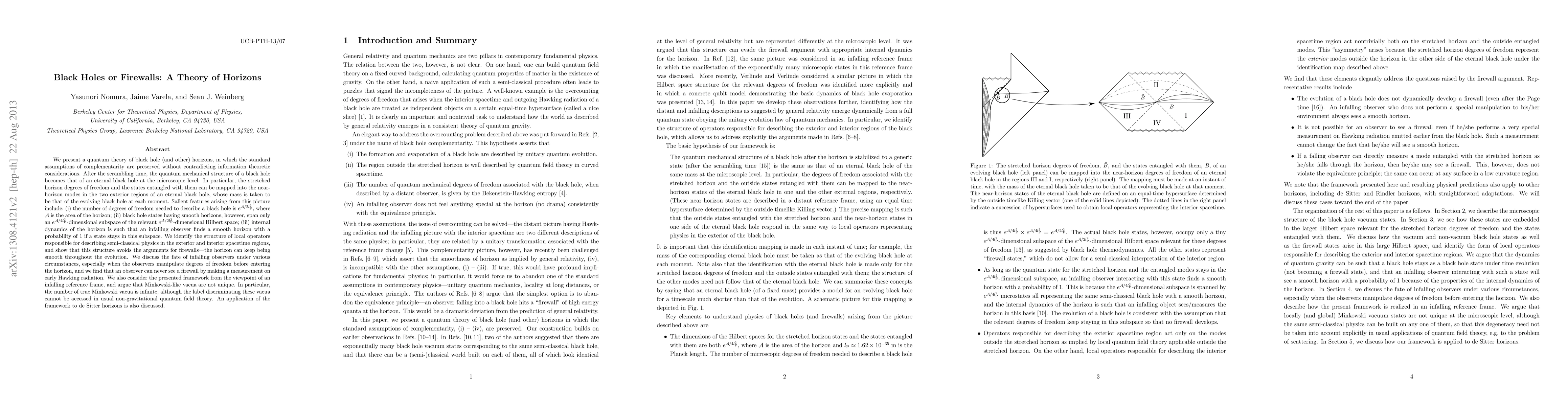 This paper proposes a quantum theory of black hole horizons that preserves complementarity without violating information theory, suggesting that black holes behave like eternal black holes at the microscopic level. It argues that smooth horizons can be maintained throughout evolution, avoiding firewall paradoxes, and discusses the infinite number of true Minkowski vacua.