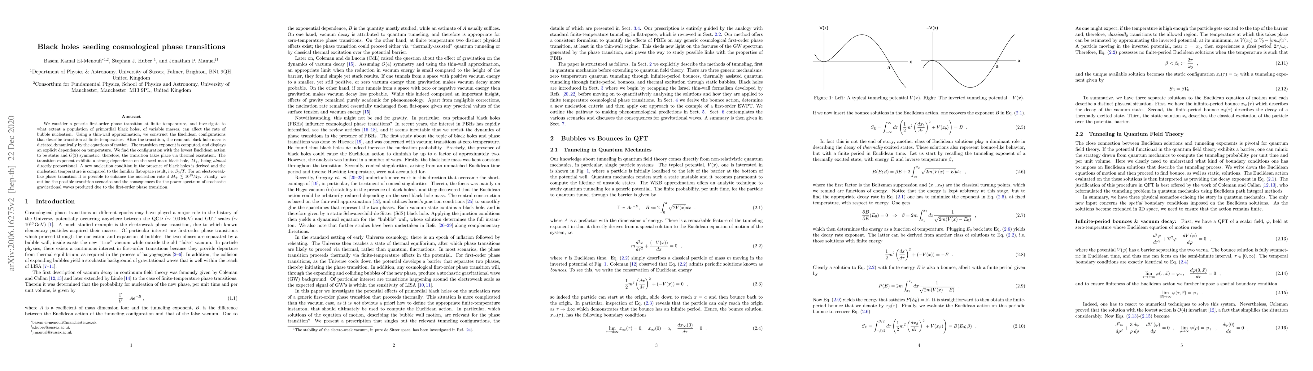 We consider a generic first-order phase transition at finite temperature and investigate to what extent a population of primordial black holes, of variable masses, can affect the rate of bubble nucleation. Using a thin-wall approximation, we construct the Euclidean configurations that describe transition at finite temperature. After the transition, the remnant black hole mass is dictated dynamically by the equations of motion. The transition exponent is computed and displays an explicit dependence on temperature. We find the configuration with the lowest Euclidean action to be static and $O(3)$ symmetric; therefore, the transition takes place via thermal excitation. The transition exponent exhibits a strong dependence on the seed mass black hole, $M_+$, being almost directly proportional. A new nucleation condition in the presence of black holes is derived and the nucleation temperature is compared to the familiar flat-space result, i.e. $S_3/T$. For an electroweak-like phase transition it is possible to enhance the nucleation rate if $M_+ \lesssim 10^{15} M_{\rm P}$. Finally, we outline the possible transition scenarios and the consequences for the power spectrum of stochastic gravitational waves produced due to the first-order phase transition.