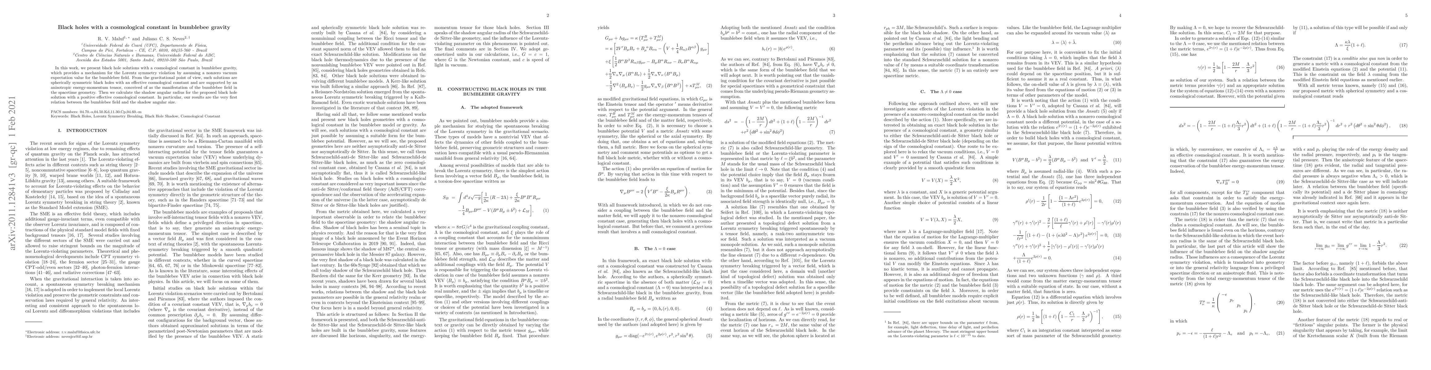 Researchers found black hole solutions with a cosmological constant in bumblebee gravity, providing a link between the bumblebee field and shadow angular size for the first time.