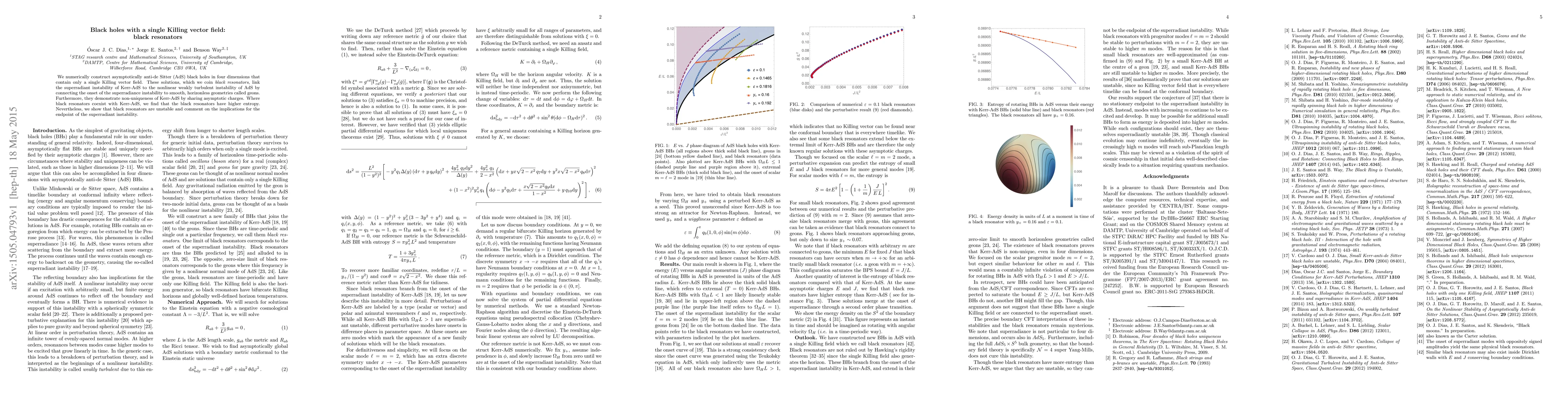We numerically construct asymptotically anti-de Sitter (AdS) black holes in four dimensions that contain only a single Killing vector field. These solutions, which we coin black resonators, link the superradiant instability of Kerr-AdS to the nonlinear weakly turbulent instability of AdS by connecting the onset of the superradiance instability to smooth, horizonless geometries called geons. Furthermore, they demonstrate non-uniqueness of Kerr-AdS by sharing asymptotic charges. Where black resonators coexist with Kerr-AdS, we find that the black resonators have higher entropy. Nevertheless, we show that black resonators are unstable and comment on the implications for the endpoint of the superradiant instability.