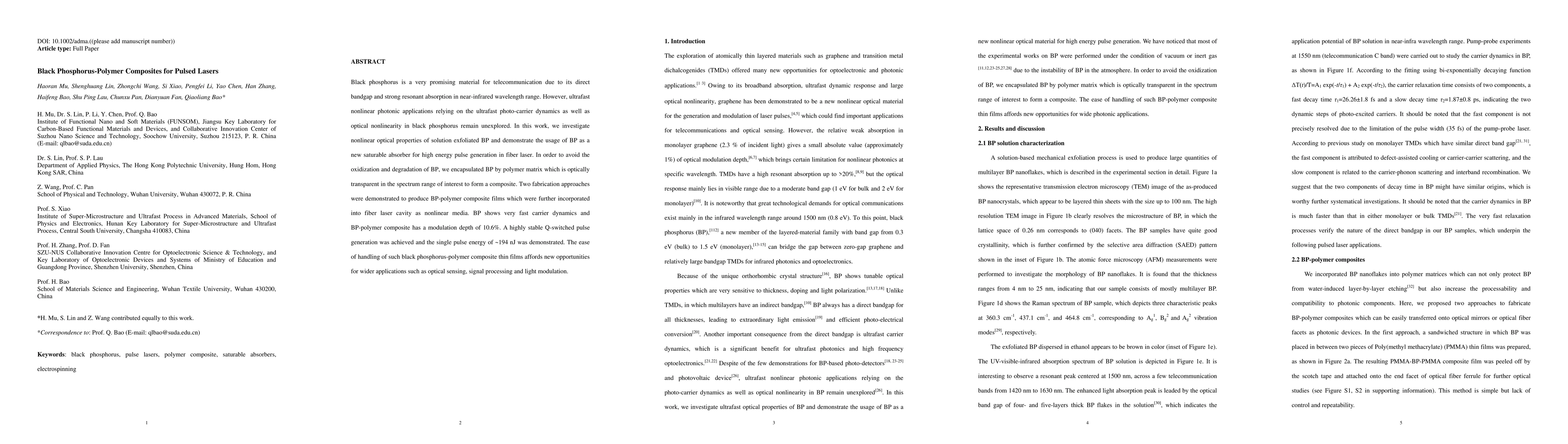 The development of a novel method for fabricating BP-based saturable absorbers using electrospinning and transfer techniques, enabling stable operation at telecommunication wavelengths.