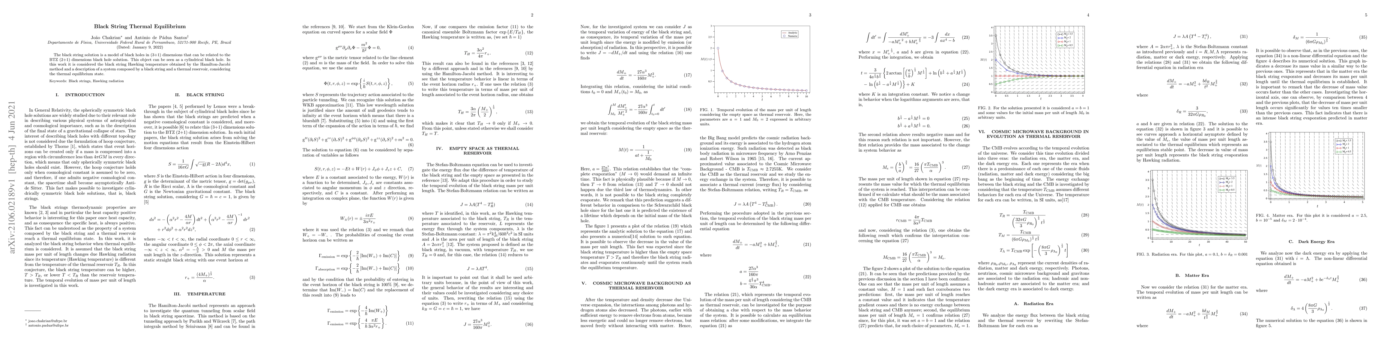 This paper explores the thermal equilibrium of black strings, cylindrical black hole models in (3+1) dimensions, using Hamilton-Jacobi method for Hawking temperature. It describes a system of black string and thermal reservoir in equilibrium.