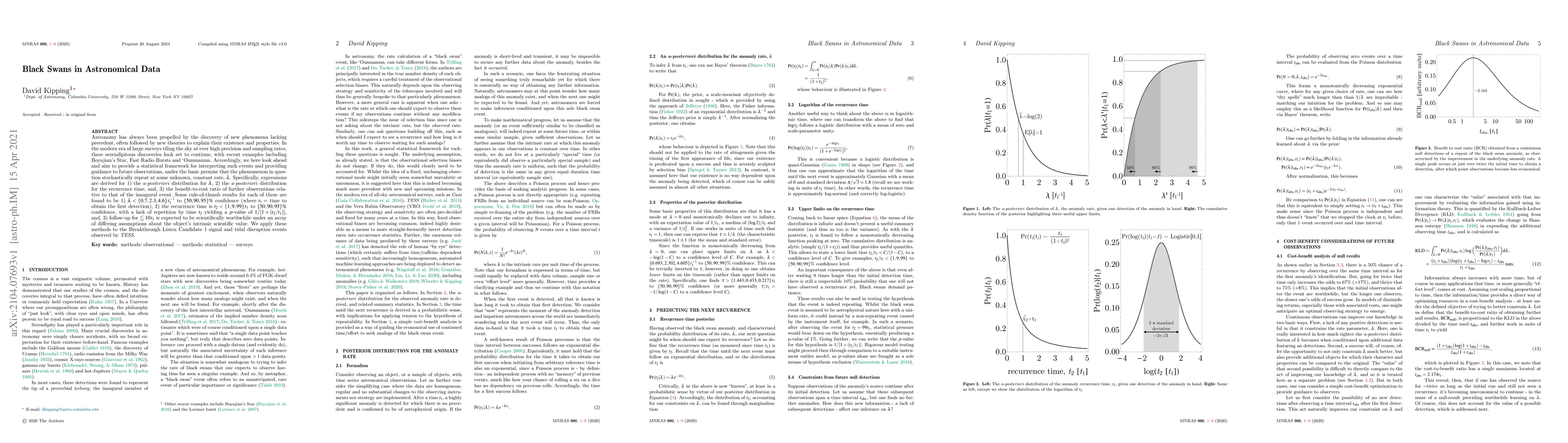 Astronomy has always been propelled by the discovery of new phenomena lacking precedent, often followed by new theories to explain their existence and properties. In the modern era of large surveys tiling the sky at ever high precision and sampling rates, these serendipitous discoveries look set to continue, with recent examples including Boyajian's Star, Fast Radio Bursts and `Oumuamua. Accordingly, we here look ahead and aim to provide a statistical framework for interpreting such events and providing guidance to future observations, under the basic premise that the phenomenon in question stochastically repeat at some unknown, constant rate, $\lambda$. Specifically, expressions are derived for 1) the a-posteriori distribution for $\lambda$, 2) the a-posteriori distribution for the recurrence time, and, 3) the benefit-to-cost ratio of further observations relative to that of the inaugural event. Some rule-of-thumb results for each of these are found to be 1) $\lambda < \{0.7, 2.3, 4.6\}\,t_1^{-1}$ to $\{50, 90, 95\}\%$ confidence (where $t_1=$ time to obtain the first detection), 2) the recurrence time is $t_2 < \{1, 9, 99\}\,t_1$ to $\{50, 90, 95\}\%$ confidence, with a lack of repetition by time $t_2$ yielding a $p$-value of $1/[1+(t_2/t_1)]$, and, 3) follow-up for $\lesssim 10\,t_1$ is expected to be scientifically worthwhile under an array of differing assumptions about the object's intrinsic scientific value. We apply these methods to the Breakthrough Listen Candidate 1 signal and tidal disruption events observed by TESS.