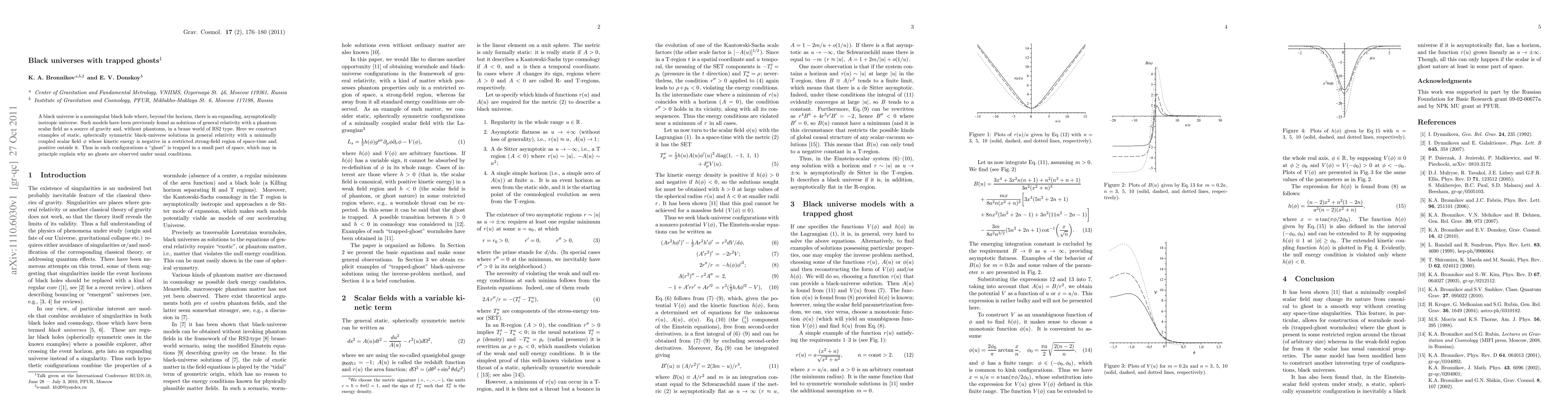 Researchers discovered static black-universe solutions in general relativity where a negative kinetic energy scalar field traps 'ghosts' in specific regions, potentially explaining their absence under usual conditions.