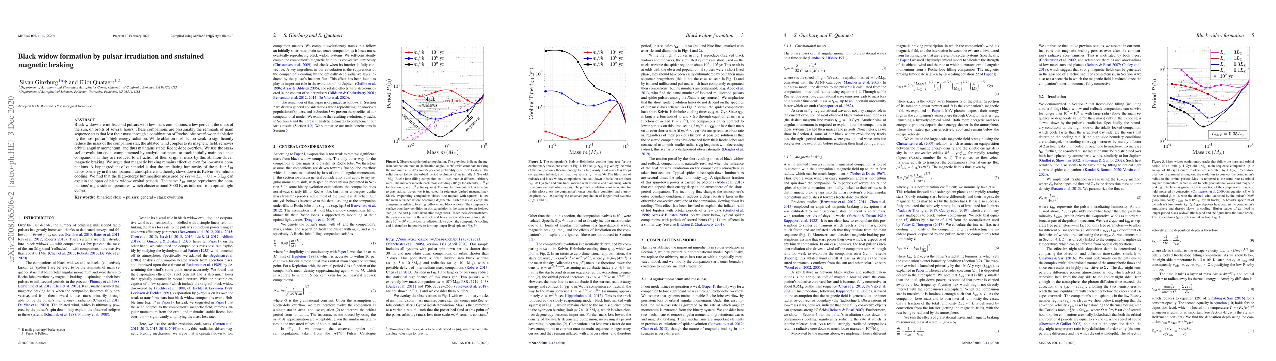 Black widows are millisecond pulsars with low-mass companions, a few per cent the mass of the sun, on orbits of several hours. These companions are presumably the remnants of main sequence stars that lost their mass through a combination of Roche-lobe overflow and ablation by the host pulsar's high-energy radiation. While ablation itself is too weak to significantly reduce the mass of the companion star, the ablated wind couples to its magnetic field, removes orbital angular momentum, and thus maintains stable Roche-lobe overflow. We use the MESA stellar evolution code, complemented by analytic estimates, to track initially main sequence companions as they are reduced to a fraction of their original mass by this ablation-driven magnetic braking. We argue that magnetic braking remains effective even for low-mass companions. A key ingredient of our model is that the irradiating luminosity of the pulsar $L_{\rm irr}$ deposits energy in the companion's atmosphere and thereby slows down its Kelvin-Helmholtz cooling. We find that the high-energy luminosities measured by Fermi $L_{\rm irr}=0.1-3\,{\rm L}_\odot$ can explain the span of black widow orbital periods. The same $L_{\rm irr}$ range reproduces the companions' night-side temperatures, which cluster around 3000 K, as inferred from optical light curves.