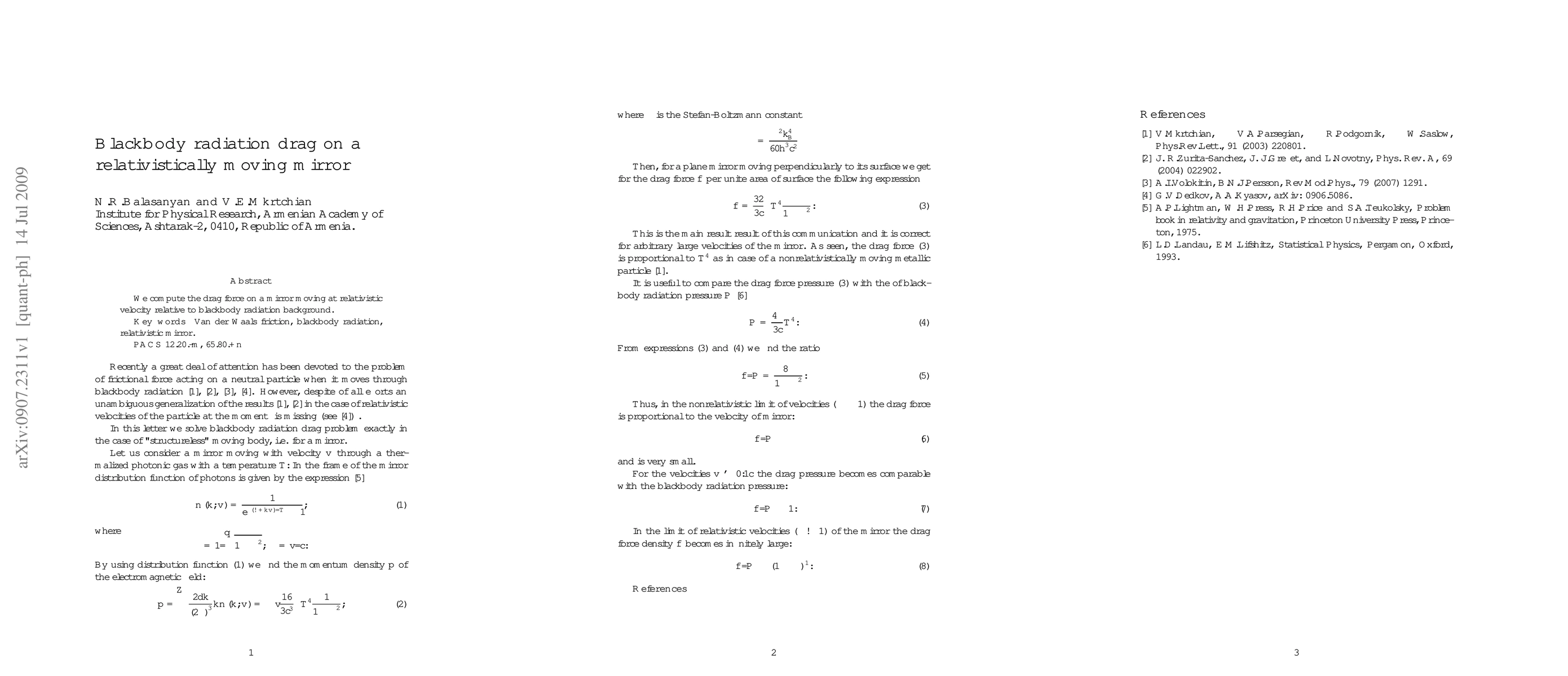 Summary: This paper calculates the drag force exerted by a blackbody radiation field on a mirror moving at relativistic speeds, providing insights into the interaction between high-speed objects and thermal radiation.