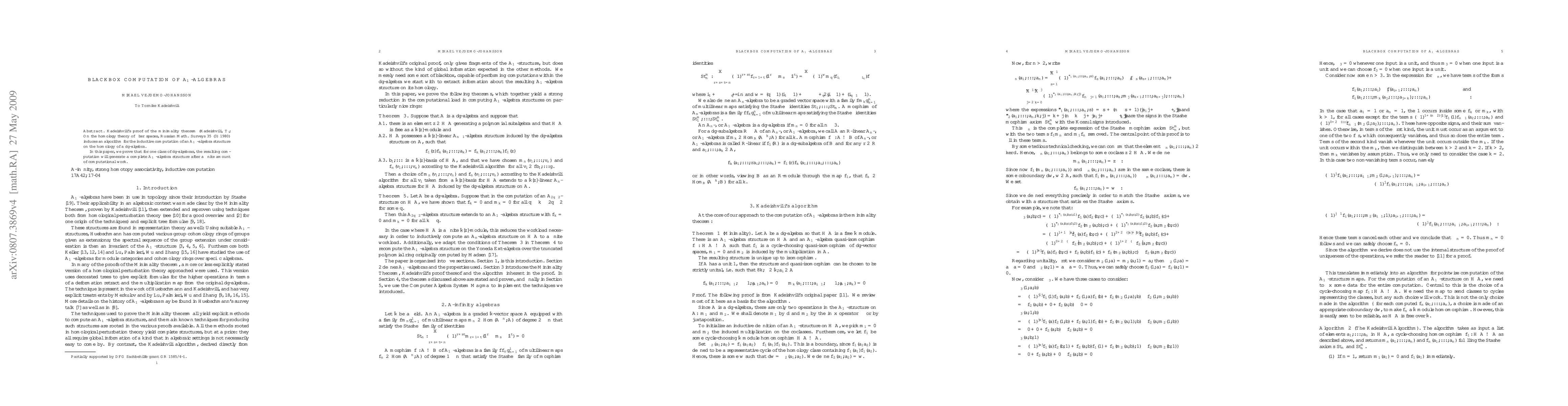 Kadeishvili's proof of the minimality theorem induces an algorithm for the inductive computation of an $A_\infty$-algebra structure on the homology of a dg-algebra. In this paper, we prove that for one class of dg-algebras, the resulting computation will generate a complete $A_\infty$-algebra structure after a finite amount of computational work.