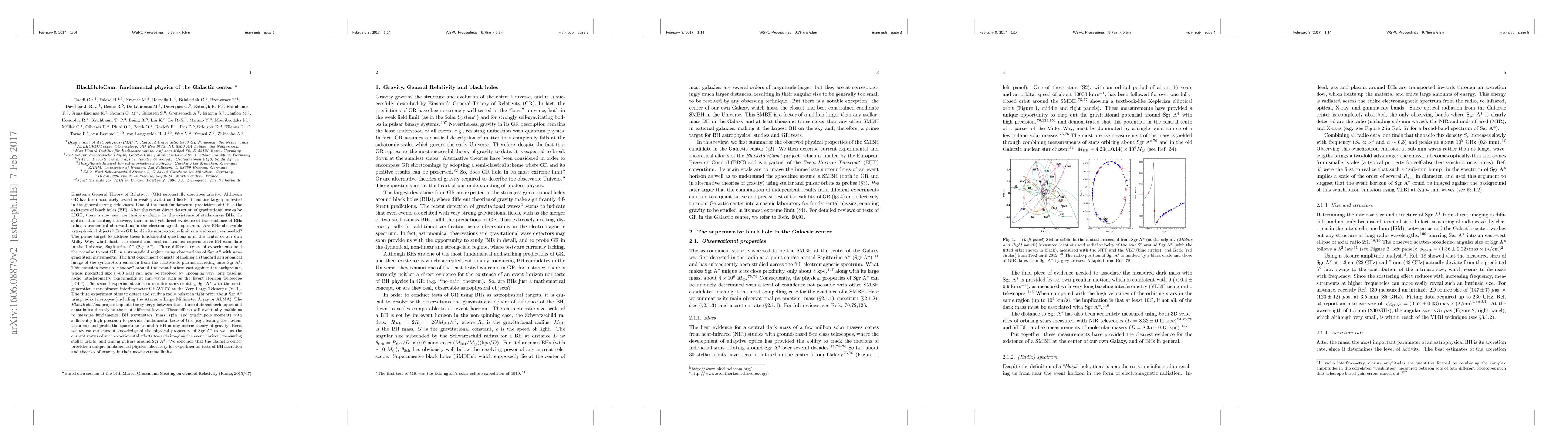 Einstein's General Theory of Relativity (GR) successfully describes gravity. The most fundamental predictions of GR are black holes (BHs), but in spite of many convincing BH candidates in the Universe, there is no conclusive experimental proof of their existence using astronomical observations in the electromagnetic spectrum. Are BHs real astrophysical objects? Does GR hold in its most extreme limit or are alternatives needed? The prime target to address these fundamental questions is in the center of our own Galaxy, which hosts the closest and best-constrained supermassive BH candidate in the Universe, Sagittarius A* (Sgr A*). Three different types of experiments hold the promise to test GR in a strong-field regime using observations of Sgr A* with new-generation instruments. The first experiment aims to image the relativistic plasma emission which surrounds the event horizon and forms a "shadow" cast against the background, whose predicted size (~50 microarcseconds) can now be resolved by upcoming VLBI experiments at mm-waves such as the Event Horizon Telescope (EHT). The second experiment aims to monitor stars orbiting Sgr A* with the upcoming near-infrared interferometer GRAVITY at the Very Large Telescope (VLT). The third experiment aims to time a radio pulsar in tight orbit about Sgr A* using radio telescopes (including the Atacama Large Millimeter Array or ALMA). The BlackHoleCam project exploits the synergy between these three different techniques and aims to measure the main BH parameters with sufficient precision to provide fundamental tests of GR and probe the spacetime around a BH in any metric theory of gravity. Here, we review our current knowledge of the physical properties of Sgr A* as well as the current status of such experimental efforts towards imaging the event horizon, measuring stellar orbits, and timing pulsars around Sgr A*.