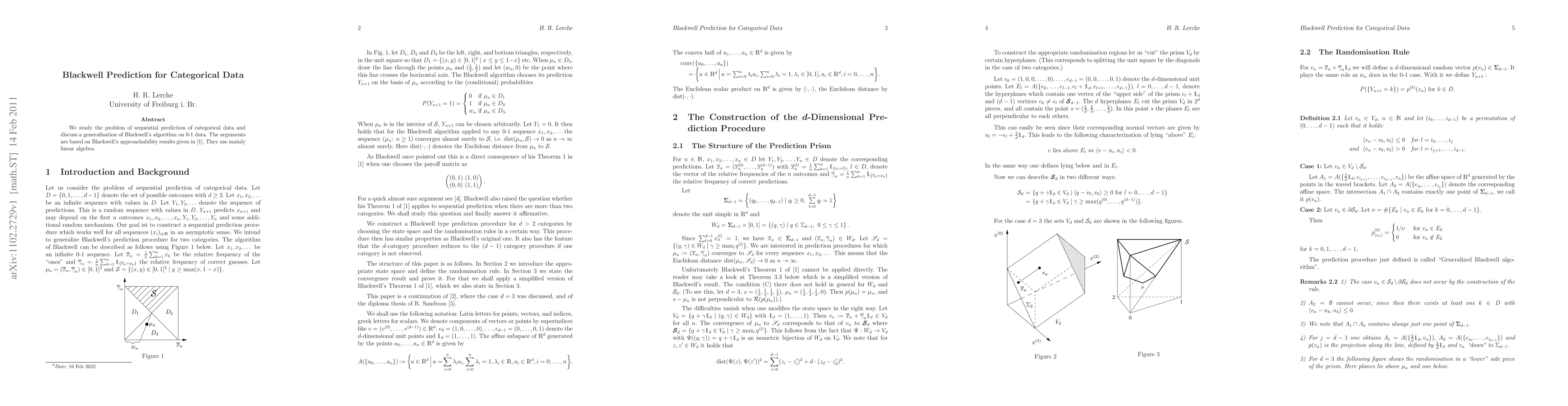 We study the problem of sequential prediction of categorical data and discuss a generalisation of Blackwell's algorithm on 0-1 data. The arguments are based on Blackwell's approachability results given in Blackwell, D. (1956): An Analog of the Minimax Theorem for Vector Payoffs, Pacific Journal of Mathematics, 6, 1-8.