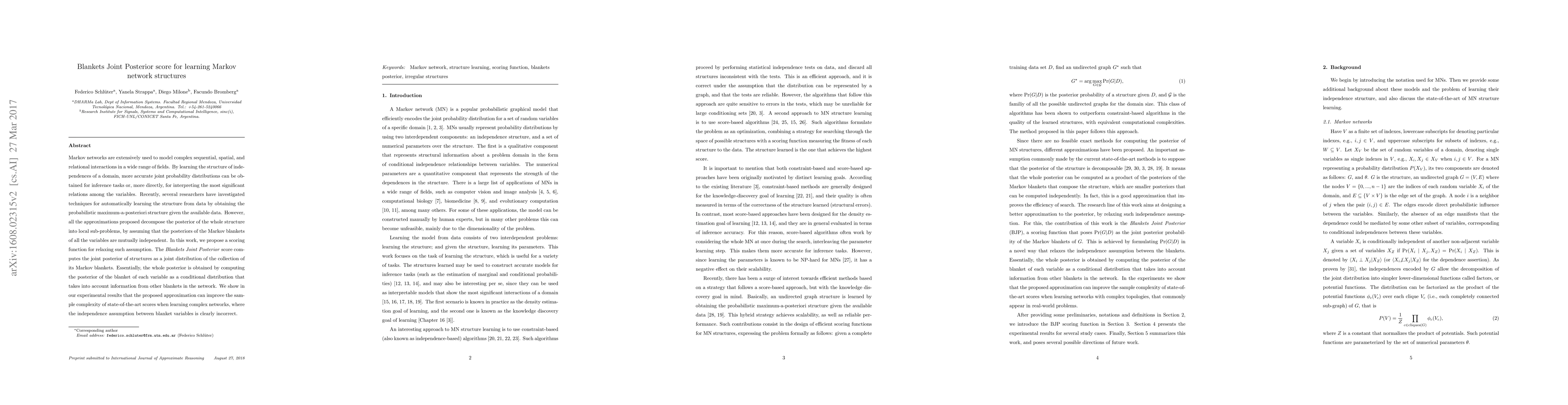 This research introduces the Blankets Joint Posterior (BJPS) score, a novel method for learning Markov network structures by considering the joint posteriors of Markov blankets rather than treating them as independent. Experimental results indicate that BJPS can enhance the efficiency of structure learning in complex networks where blanket variables' independence assumption is violated.