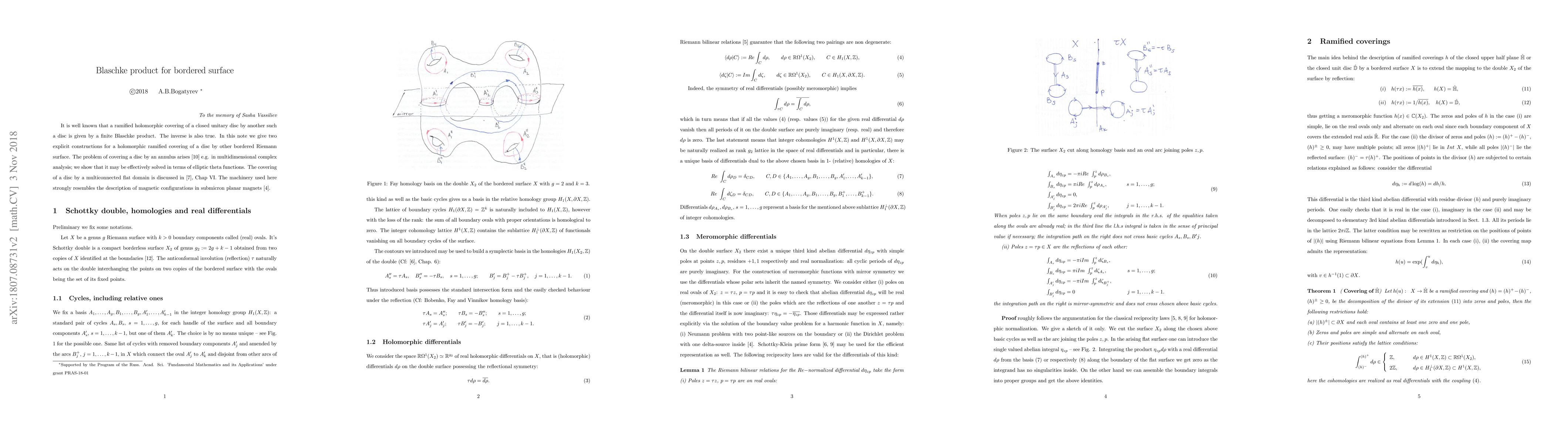 It is well known that a ramified holomorphic covering of a closed unitary disc by another such a disc is given by a finite Blaschke product. The inverse is also true. In this note we give an explicit description of holomorphic ramified coverings of a disc by other bordered Riemann surfaces. The problem of covering a disc by an annulus arises e.g. in multidimensional complex analysis; we show that it may be effectively solved in terms of elliptic theta functions. The covering of a disc by a flat domain is discussed in a monograph by Goluzin. The machinery used here strongly resembles the description of magnetic configurations in submicron planar magnets.