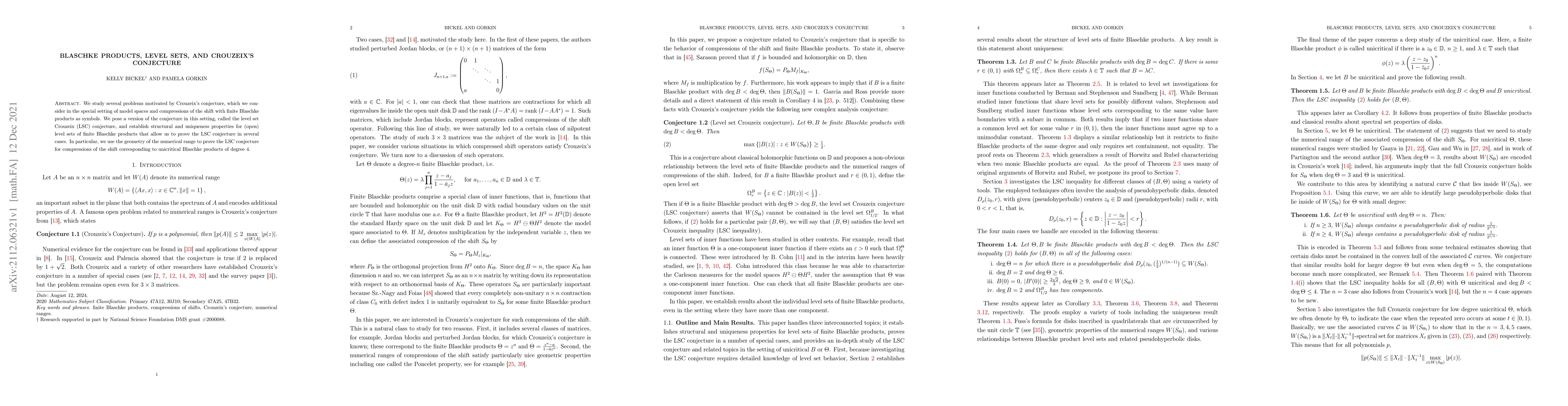 We study several problems motivated by Crouzeix's conjecture, which we consider in the special setting of model spaces and compressions of the shift with finite Blaschke products as symbols. We pose a version of the conjecture in this setting, called the level set Crouzeix (LSC) conjecture, and establish structural and uniqueness properties for (open) level sets of finite Blaschke products that allow us to prove the LSC conjecture in several cases. In particular, we use the geometry of the numerical range to prove the LSC conjecture for compressions of the shift corresponding to unicritical Blaschke products of degree $4$.