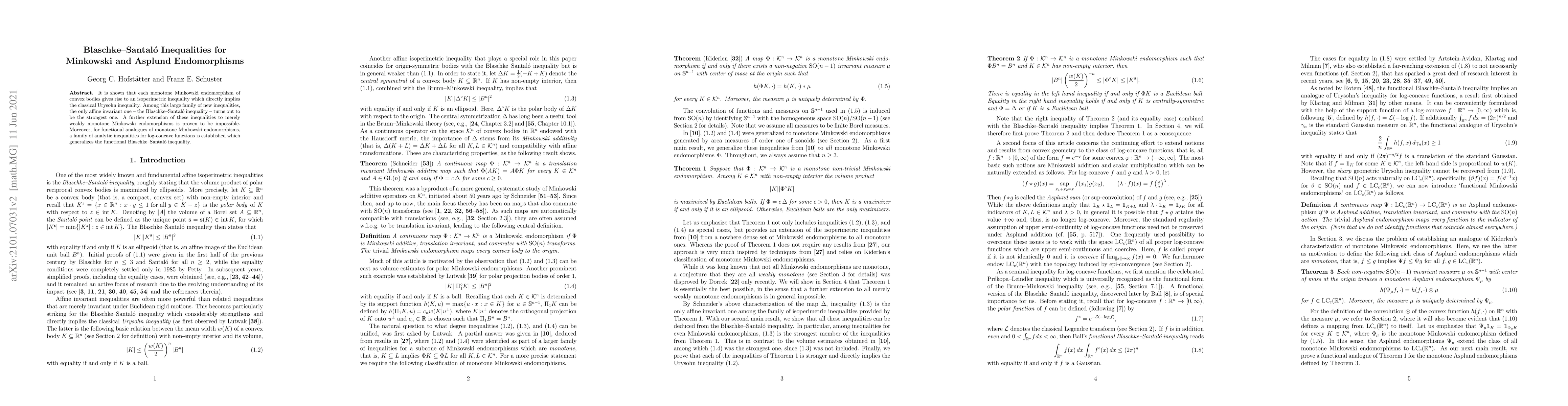This paper presents new isoperimetric inequalities derived from monotone Minkowski endomorphisms of convex bodies, showing that the classical Urysohn inequality is implied. The strongest among these is the affine invariant Blaschke-Santaló inequality, while extensions to weakly monotone endomorphisms are not feasible. Additionally, functional analogues lead to a family of analytic inequalities for log-concave functions.