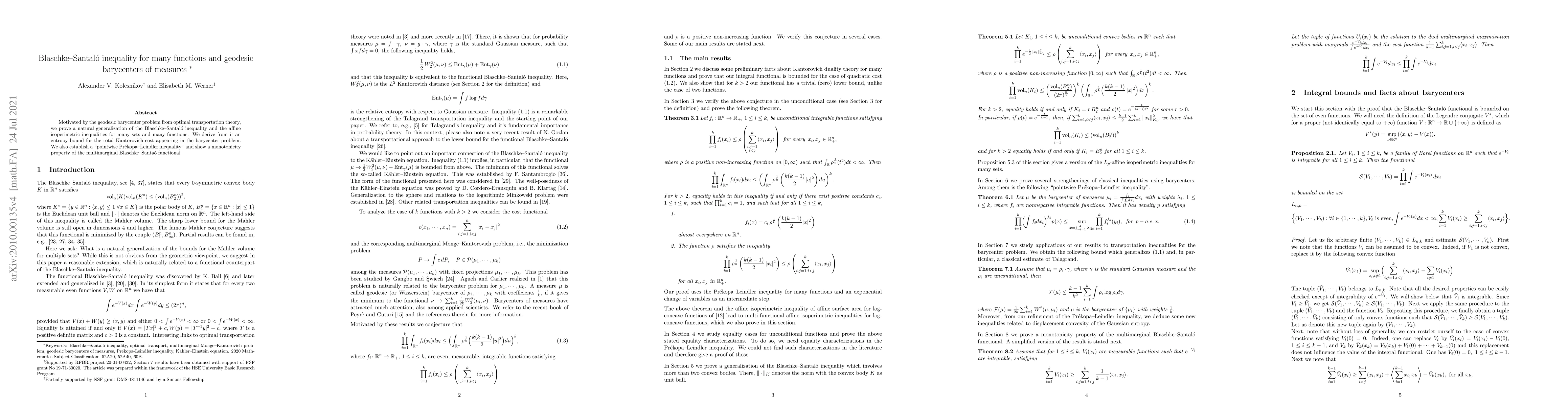 This paper generalizes the Blaschke-Santalo inequality and affine isoperimetric inequalities to many sets and functions, deriving an entropy bound for the Kantorovich cost in optimal transportation theory. It also introduces a "pointwise Prekopa-Leindler inequality" and demonstrates a monotonicity property of the multimarginal Blaschke-Santalo functional.