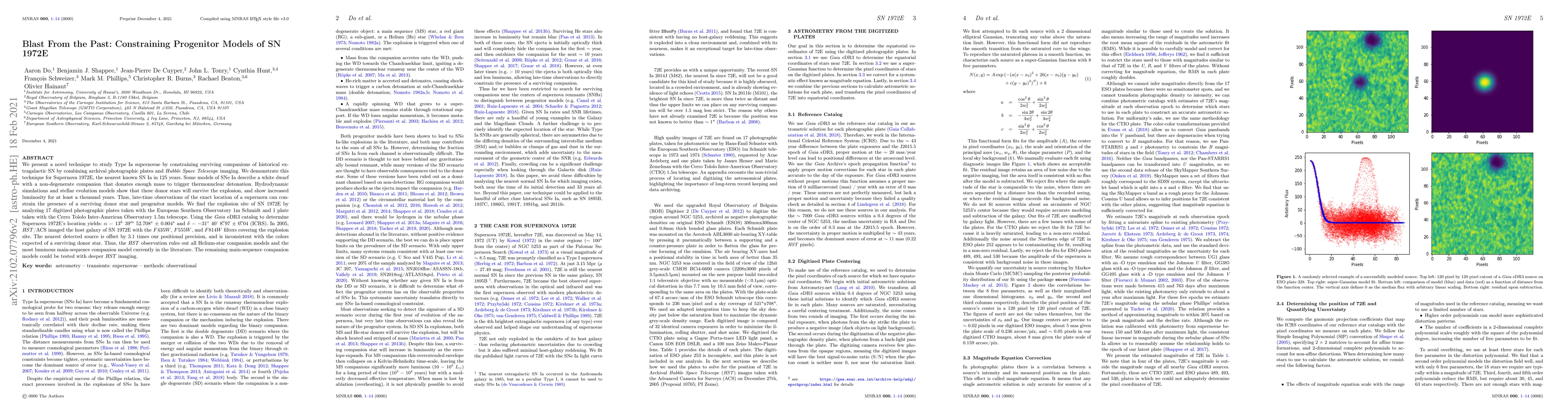 We present a novel technique to study Type Ia supernovae by constraining surviving companions of historical extragalactic SN by combining archival photographic plates and Hubble Space Telescope imaging. We demonstrate this technique for Supernova 1972E, the nearest known SN Ia in over 125 years. Some models of Type Ia supernovae describe a white dwarf with a non-degenerate companion that donates enough mass to trigger thermonuclear detonation. Hydrodynamic simulations and stellar evolution models show that these donor stars survive the explosion, and show increased luminosity for at least a thousand years. Thus, late-time observations of the exact location of a supernova after its ejecta have faded can constrain the presence of a surviving donor star and progenitor models. We find the explosion site of SN 1972E by analyzing 17 digitized photographic plates taken with the European Southern Observatory 1m Schmidt and 1 plate taken with the Cerro Tololo Inter-American Observatory 1.5m telescope from 1972-1974. Using the \textit{Gaia} eDR3 catalog to determine Supernova 1972E's equatorial coordinates yields: $\alpha$ = 13$^h$ 39$^m$ 52.708$^s$ $\pm$ 0.004$^s$ and $\delta$ = $-$31\degree 40' 8\farcs97 $\pm$ 0\farcs04 (ICRS). In 2005, HST/ACS imaged NGC 5253, the host galaxy of SN 1972E, with the $F435W$, $F555W$, and $F814W$ filters covering the explosion site. The nearest source detected is offset by 3.0 times our positional precision, and is inconsistent with the colors expected of a surviving donor star. Thus, the 2005 HST observation rules out all Helium-star companion models, and the most luminous main-sequence companion model currently in the literature. The remaining main-sequence companion models could be tested with deeper HST imaging.